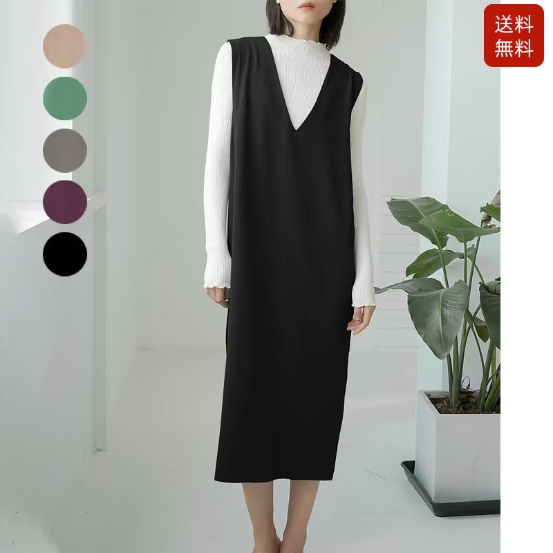 日韓のけだるい風A字シンプルゆったりスカート秋冬ノースリーブ無地タンクトップワンピース人気 サロペットワンピー無地 ロング丈 ノースリーブ ワンピース ドレス [5カラー