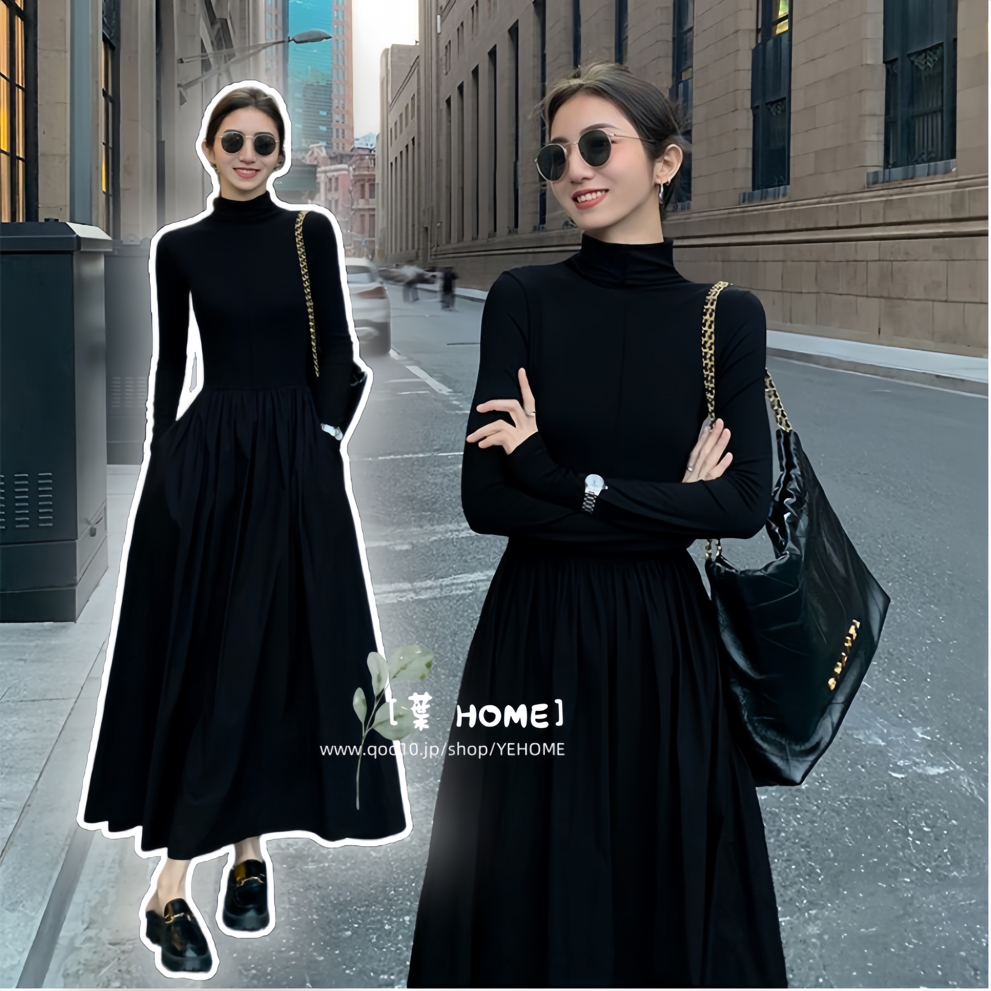 [葉 HOME] タートルネックニットワンピース 無地 マキシ丈 長袖 ニットワンピ シンプル ニットワンピース ニットワンピ