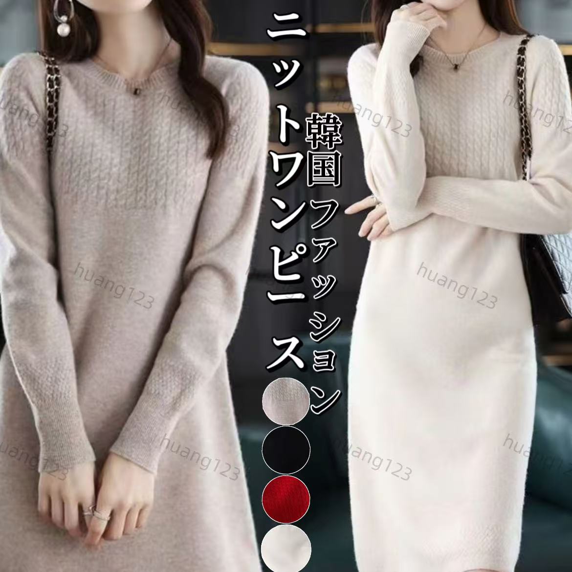 タートルネックニットワンピース 無地 マキシ丈 長袖 ニットワンピ シンプル ニットワンピース ニットワンピ