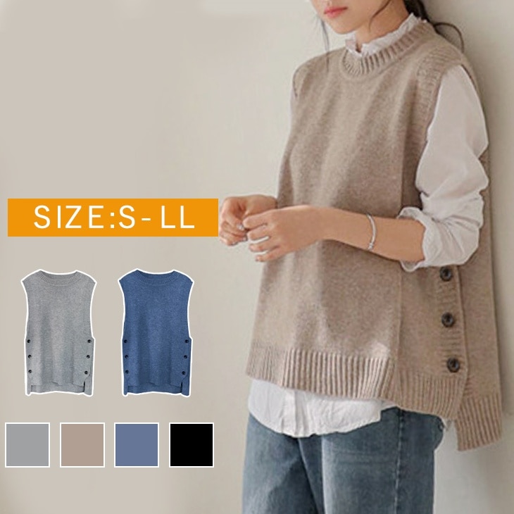 ベーシックニット 韓国ファッション 無地 秋冬 レディースベスト レディーストップス レディースセーター
