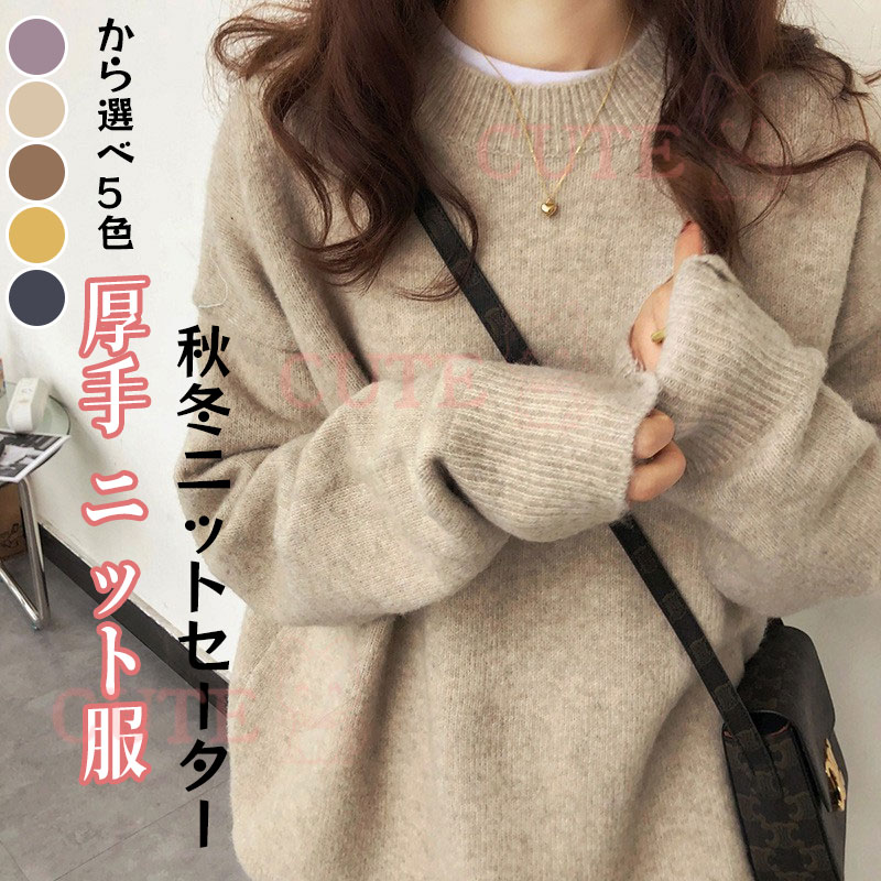 韓国人気商品 厚手 ニット服 セーター ニットセーター トップス 無地 厚手シャツ 秋冬 トップス ニット インナー ベーシックニット 丸ネック