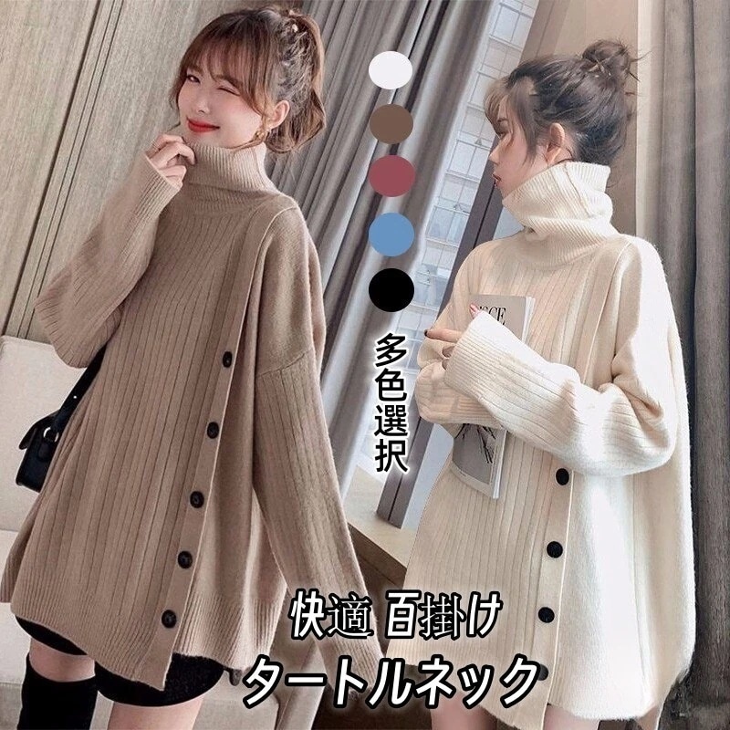 ベーシックニット 冬 ハイネックニットトップス タートルネック無地厚手暖かい セーターレディース韓国ファッション 百掛けニット ニット