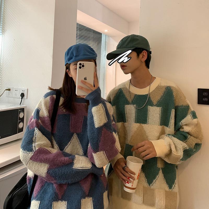 ブラウス新しい秋と冬のラウンドネックセーターカップルルーズトレンドセーターメンズ長袖シャツ秋アウターラウンドネックニットあったか カシミヤタッチロンT