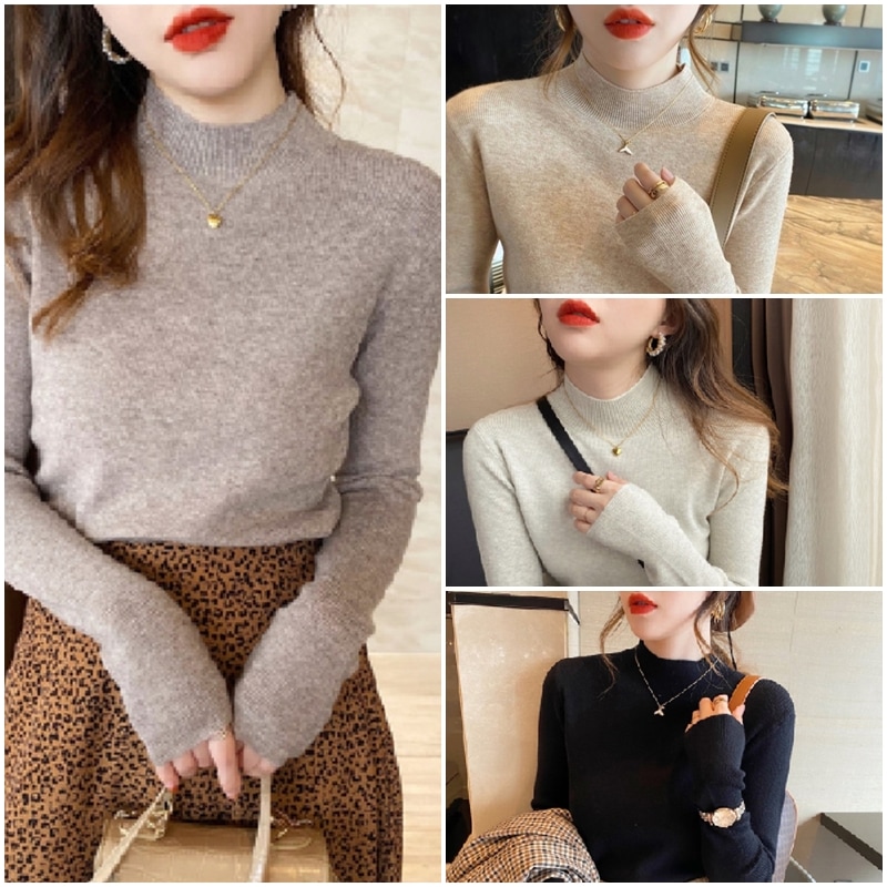 韓国人気商品ハイネックニット着るだけモテニット 女性服セーター ハイカラー大サイズ無地厚手シャツルーズレイジーウーセーター