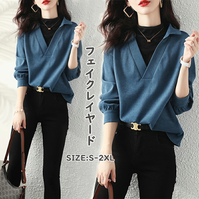 シャツ ニット レディース 秋冬 フェイクレイヤード 長袖 ニットソー 切り替え アウター ハイネック 無地 ニット セーター シャツブラウス プルオーバー 春 デザイン セレカジ 上品 シャツ 重ね