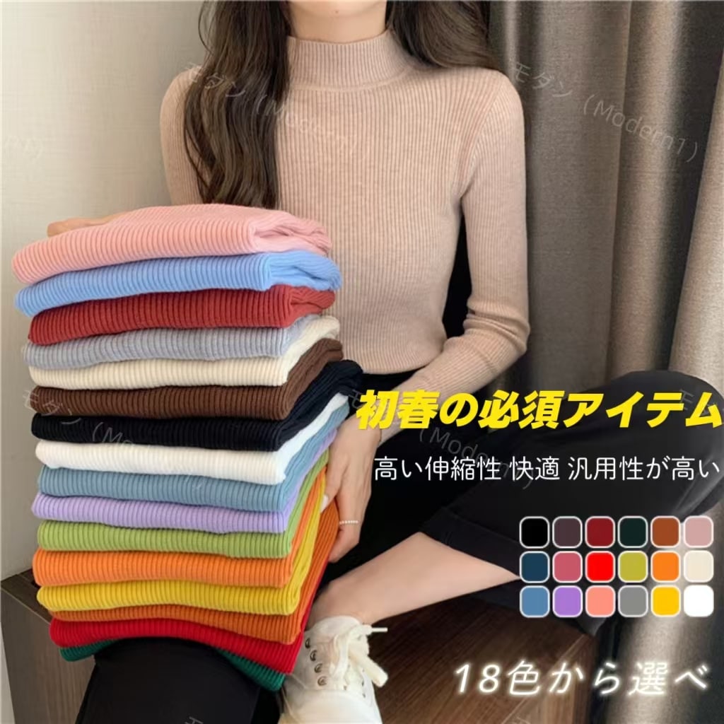 春定番ニットインナー 無地 ハイネック セーター レディース 人気なリブニット 汎用性が高い ベーシックニット 超極暖インナー トップス 重ね着 タートルネック カシミヤタッ