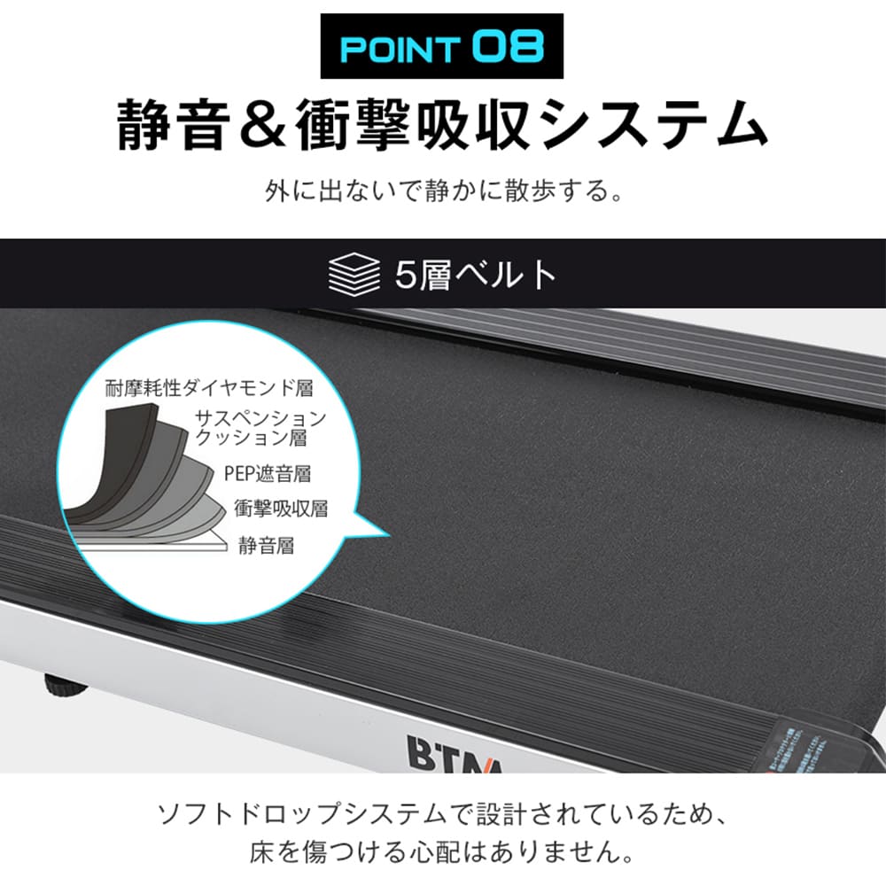 【静音&衝撃吸収システム】外に出ないで静かに散歩する。 5層ベルト ソフトドロップシステムで設計されているため、床を傷つける心配はありません。 底には独特のクッションがついています。衝撃を吸収し、騒音を減らすことができます。