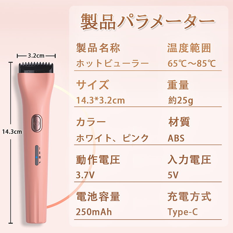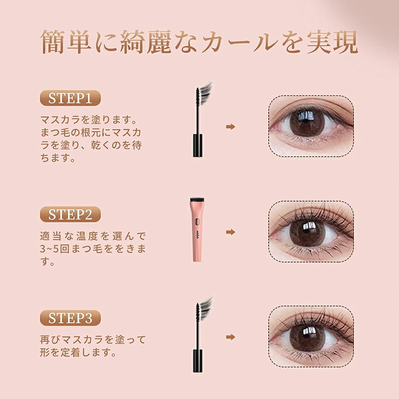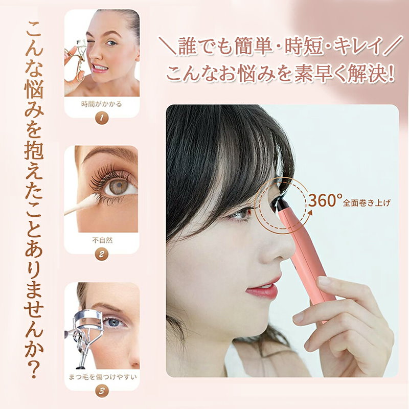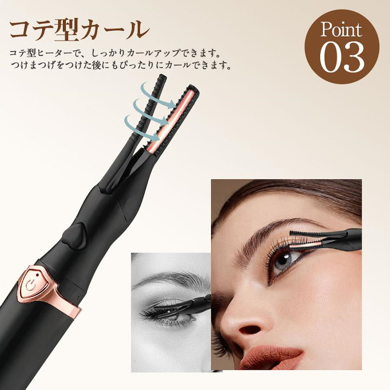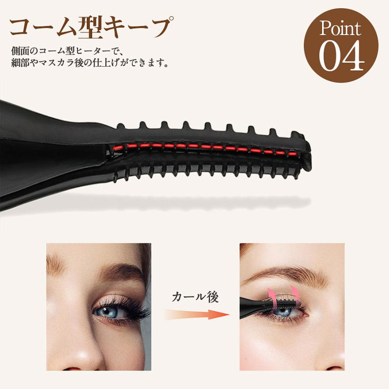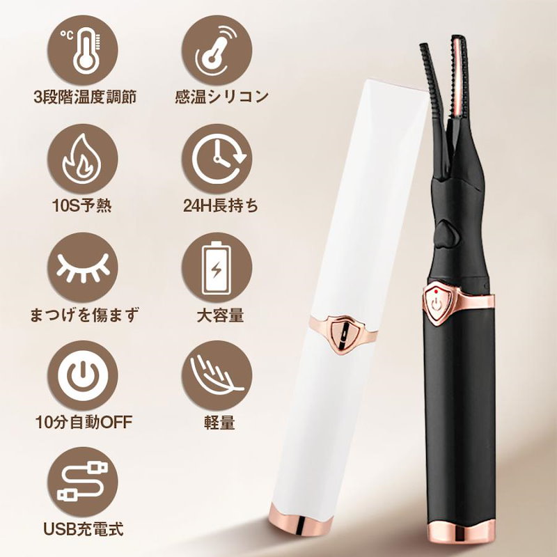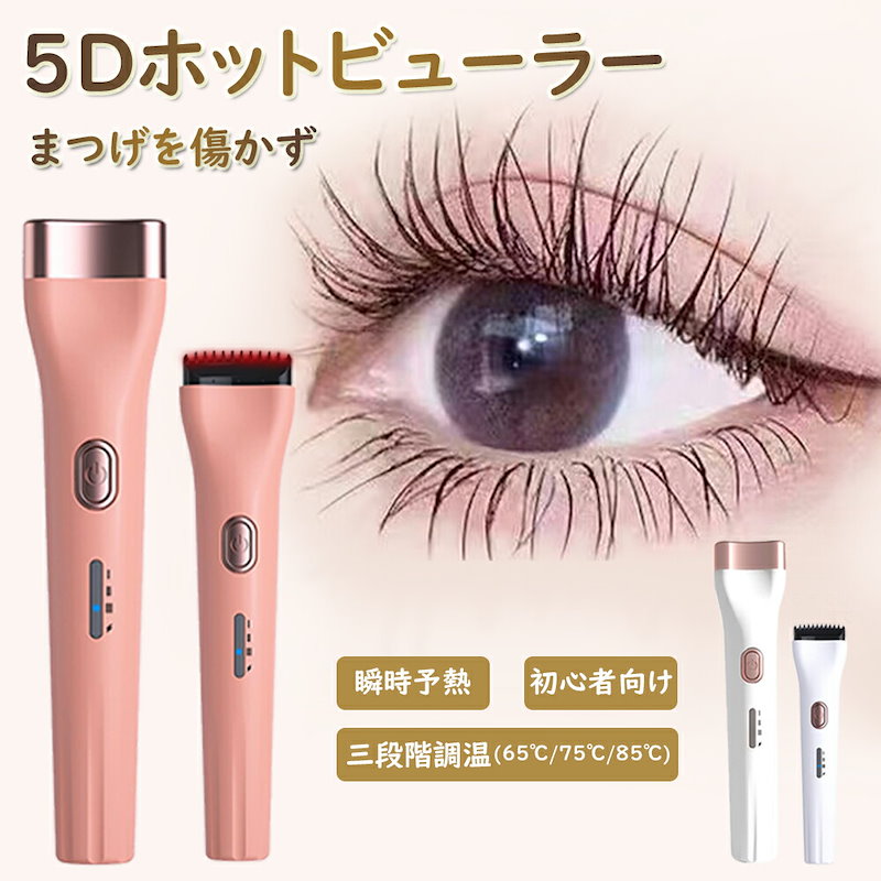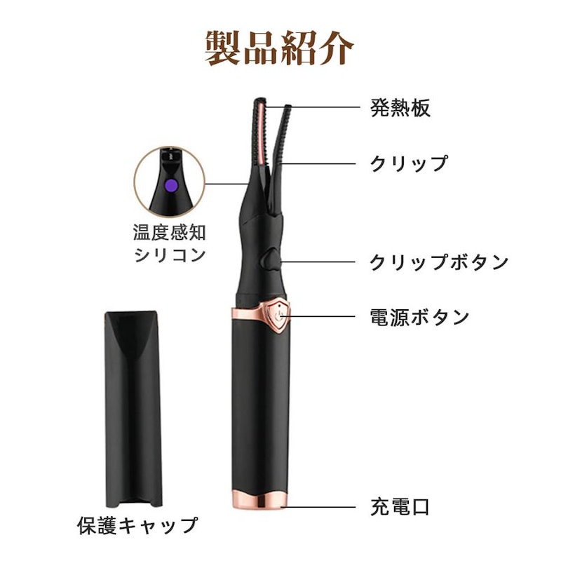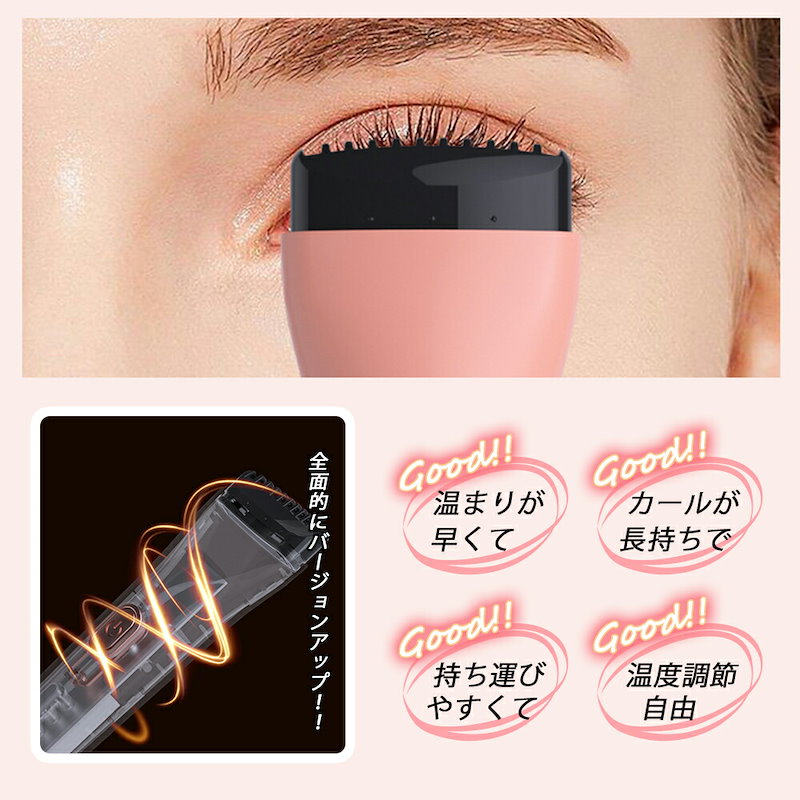 ホットビューラー グリップ式グリップ USB充電式 まつげ ビューラー ホット まつ毛カーラー 下まつげ 2in1 クリップ コテ型 コーム型 アイラッシュカーラー 上向き