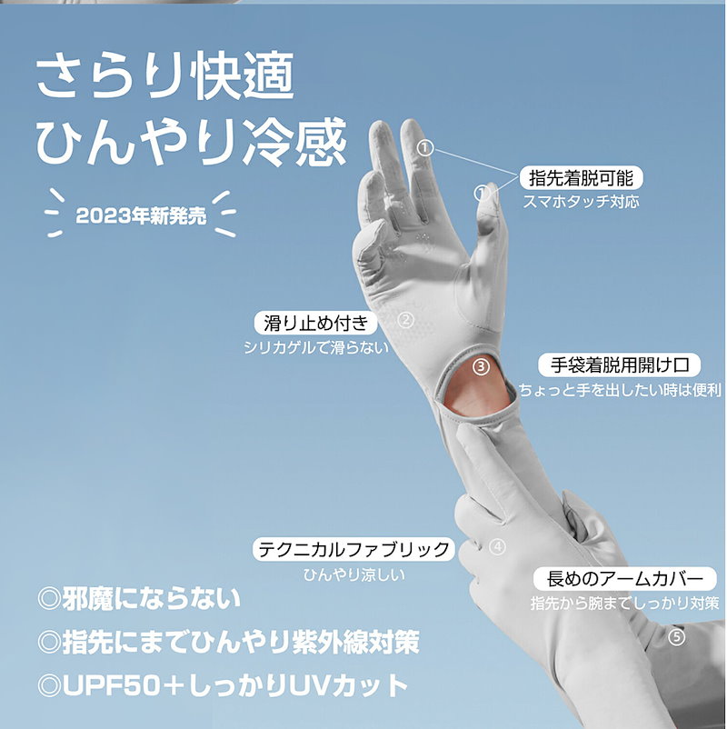 アームカバー UVカット 紫外線カット 手袋 日焼け 日焼け対策 日焼け止め 袖カバー uv対策 夏 冷却 冷感 涼しい ゆったり ロング 指先 スポーツ 自転車 運転 メンズ レディース