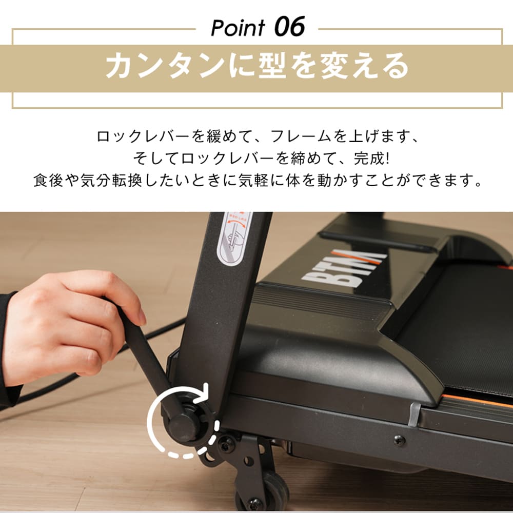 【使いやすい操作パネル】 誰にでも簡単に操作ができるようシンプルな機能に特化させました。使いこなせないなんて無駄な機能はありません。LEDディプレイ LEDなので暗いところでも見やすい表示がくっきりと見やすいディプレイです。時間-スピード-距離-カロリーの順に表示されます。*保護膜があるので、ご使用の前に剥がしてください。