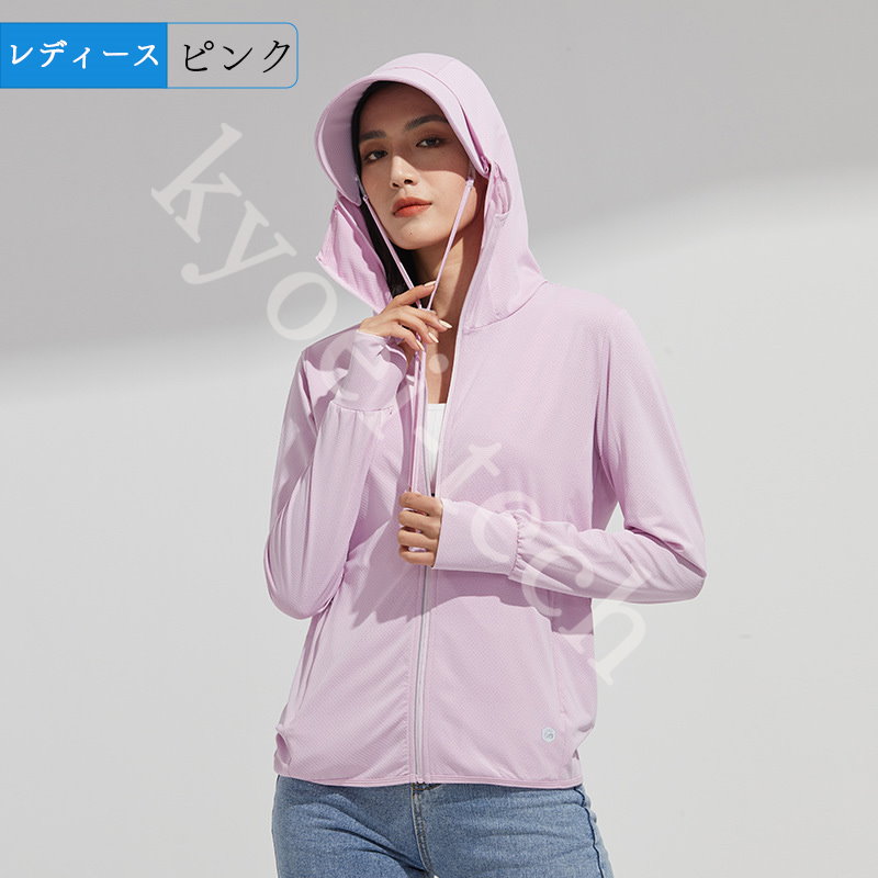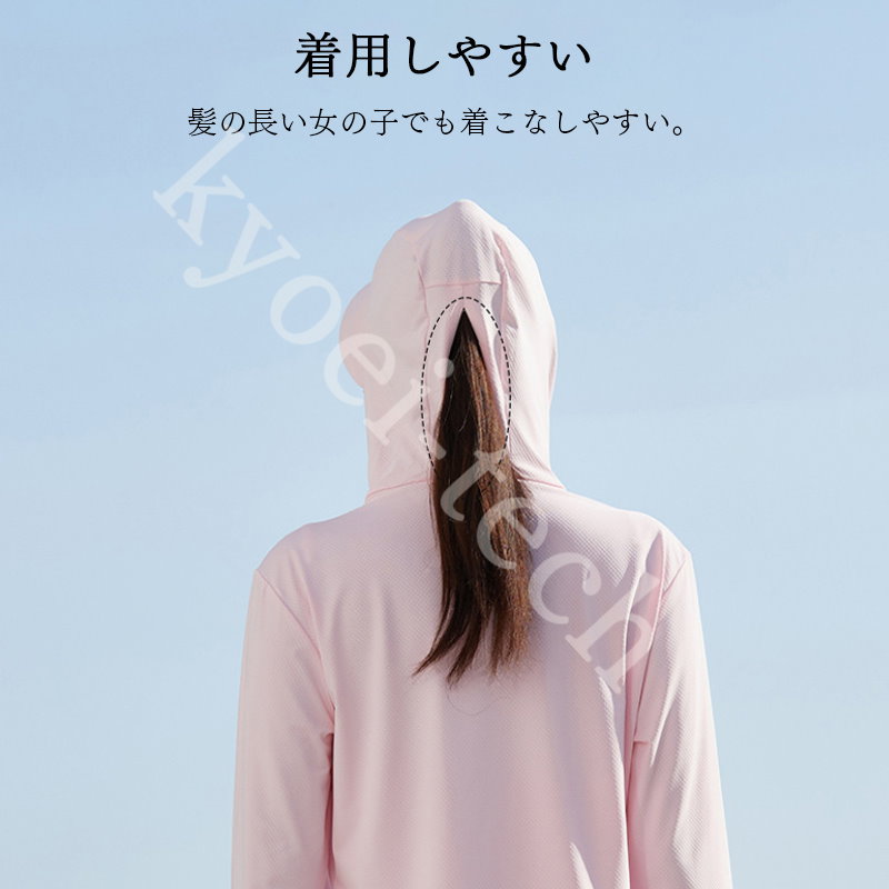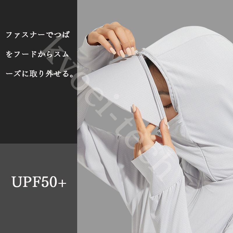 UVパーカー冷感 -7℃ M-5XL レディース 長袖 ラッシュガード 遮光 コーディング つば UVカット アウターメッシュ 通気口 指穴 取り外し日焼け防止服 大きいサイズ 体型カバー 薄手 吸汗