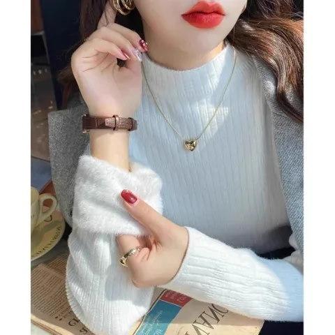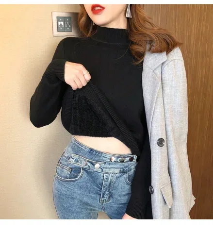 裏起毛3TYPE ニットセーター保温 暖かい 上質 リブ ニット トップス レディース タイト シルエット ストレッチ カットソー 無地 秋冬 トップス
