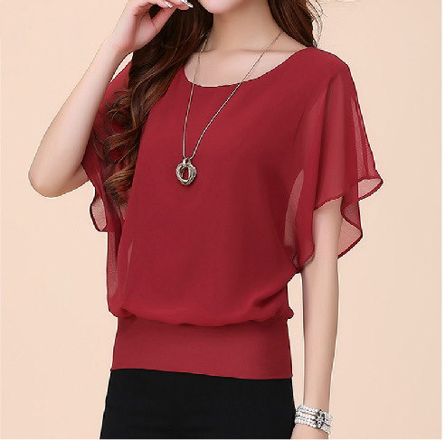 フリル袖 半袖 シフォン ブラウス シャツ 5colorチュニック 無地レース フリル袖カットソー レース襟 シンプル クルーネック Uネック レディース 春 夏 トップス フォーマル 薄手 シースル