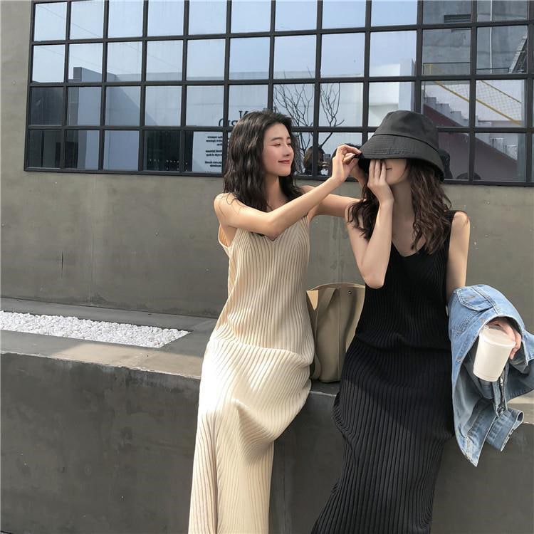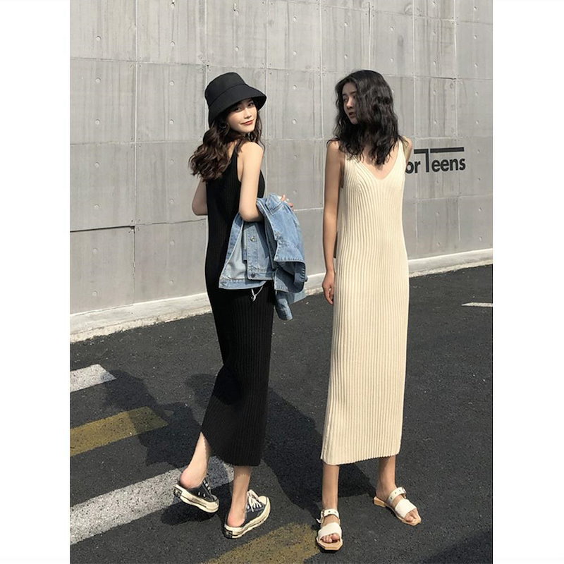 夏のキャミソールワンピース ウエストシェイプ ロング スリムフィット 学生用ワンピース 涼しい ルームウェア