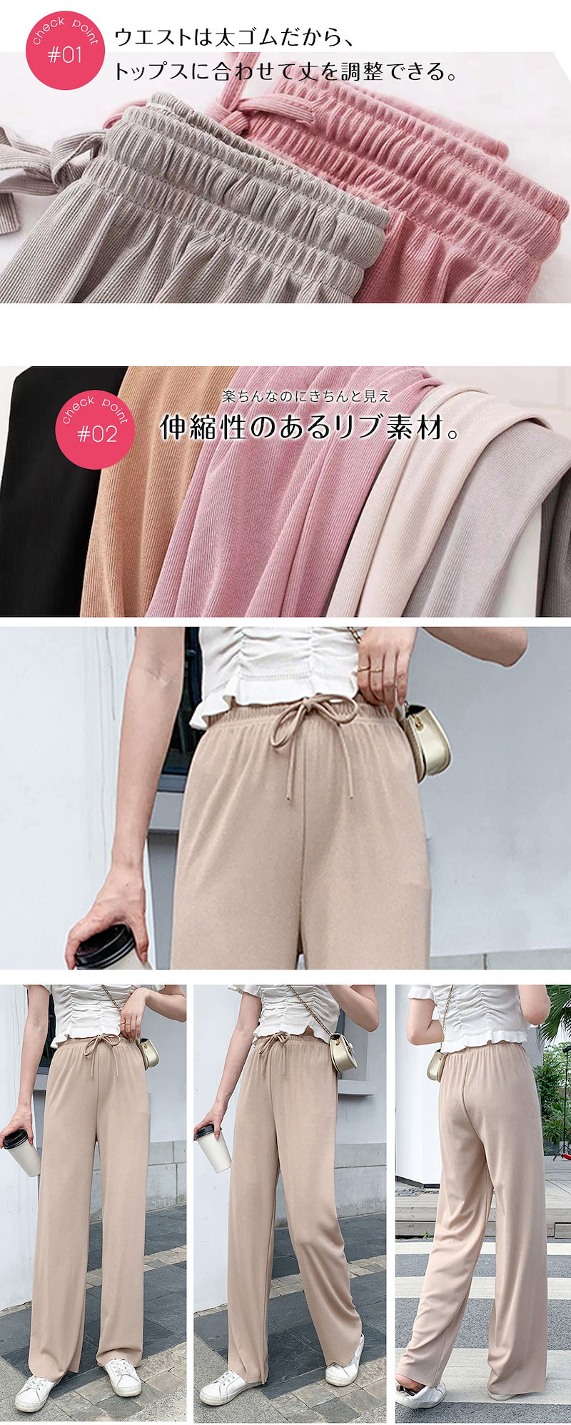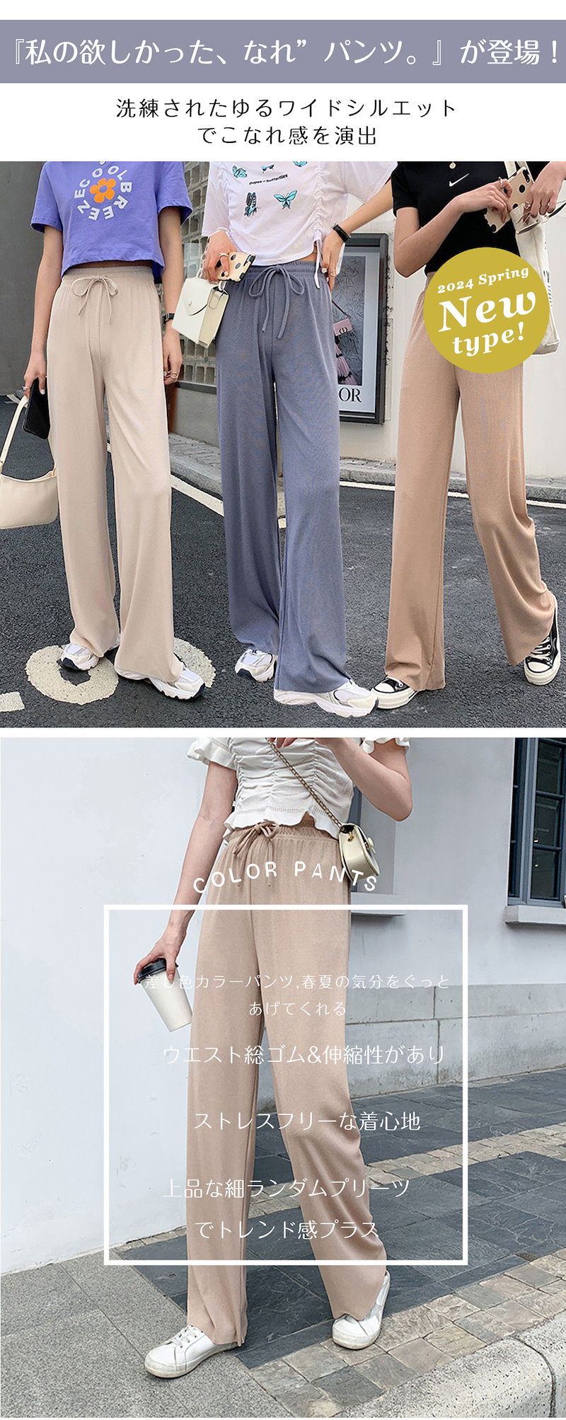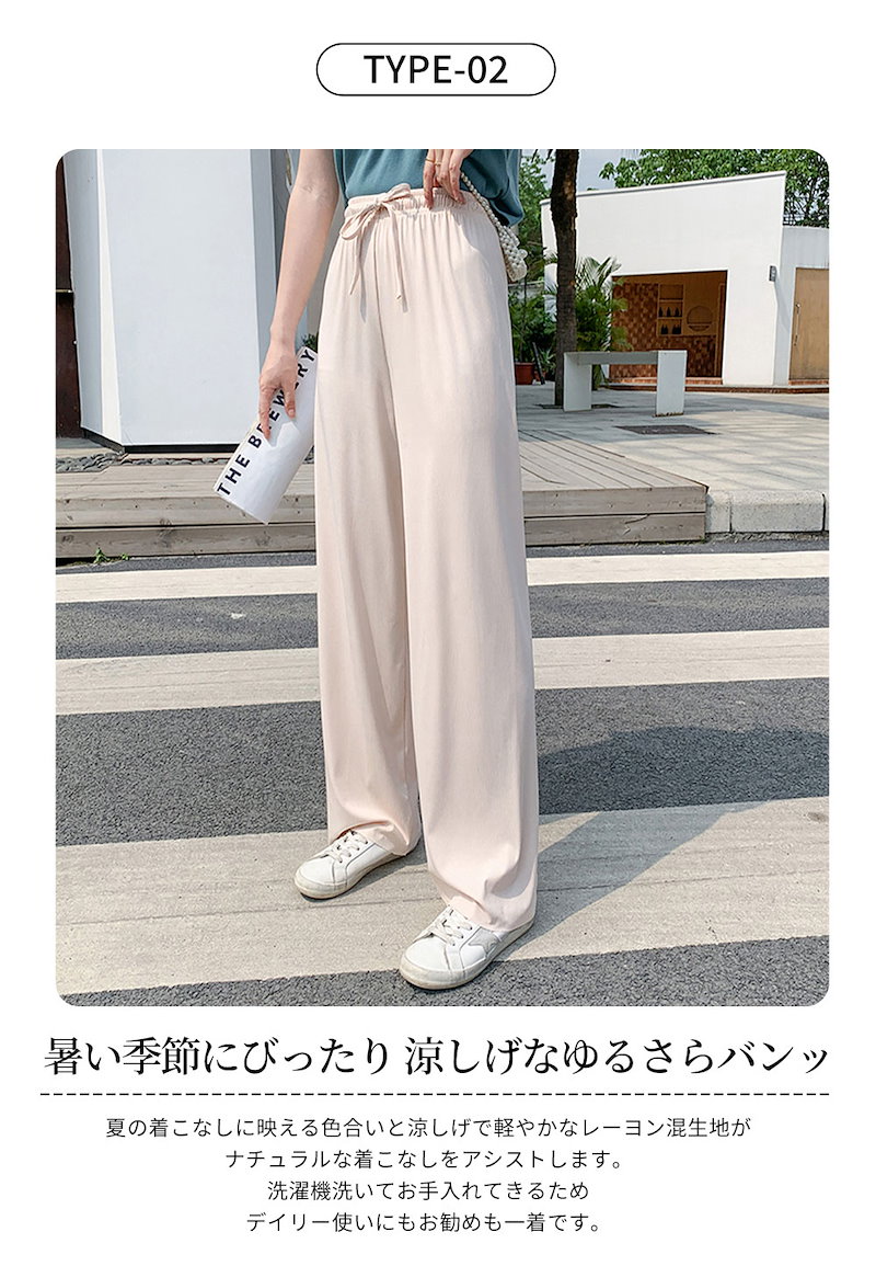 2枚購入で100円OFF 選べる2タイプ 冷感新作 2024春新作ワイドパンツ4カラーレディース ガウチョパンツ ロングパンツ 長ズボン 着痩せ ゆったり 美