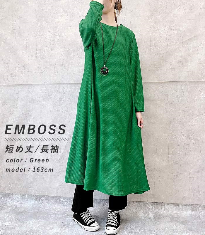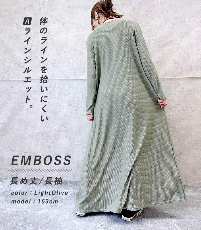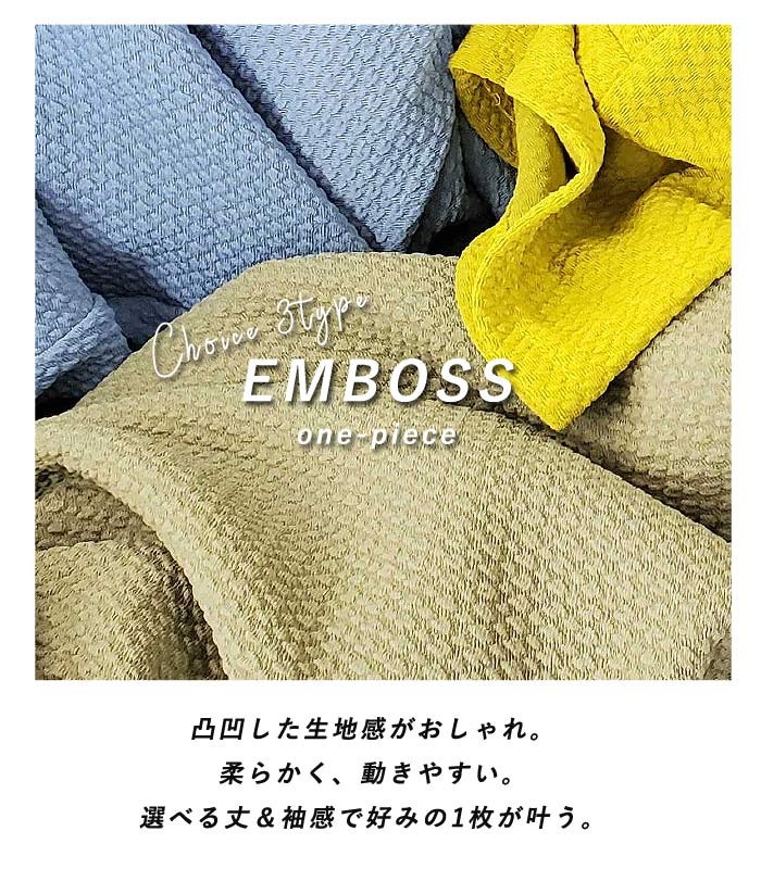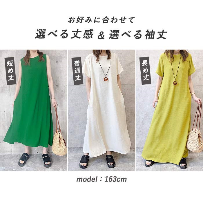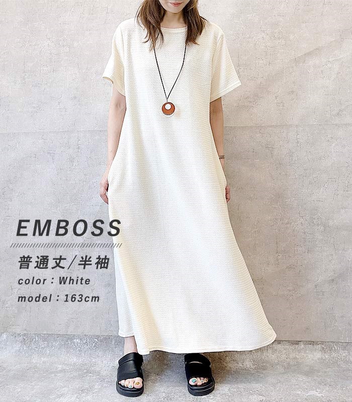 ワンピース ワンピ ノースリーブ 半袖長袖レディース エンボス ロング丈 マキシ丈 楽ちん 春 夏 秋 [郵3]^w700^
