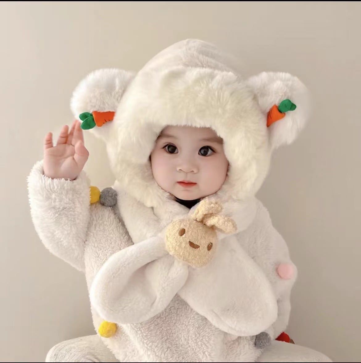 赤ちゃん帽子マフラー一体ネックキャップ赤ちゃん秋冬かわいい超萌え男女子供冬子供耳保護帽 帽子