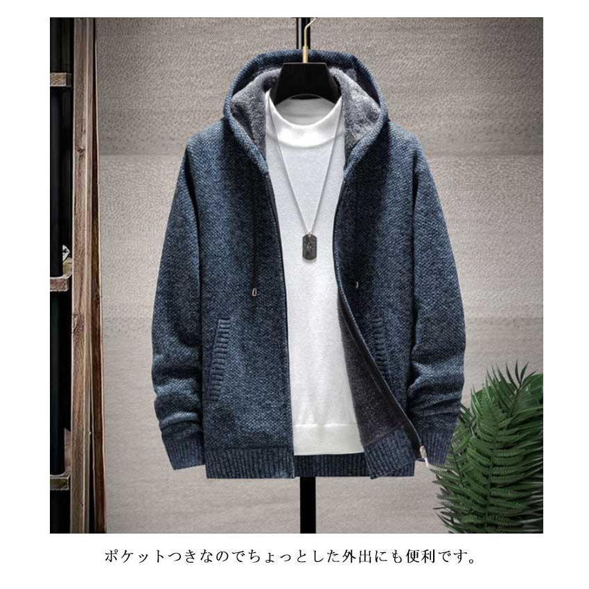 ニットカーディガン メンズ カーディガン ロングパーカー 裏起毛 コート ブルゾン ジャケット アウター ロング丈 上着 ニットセーター その他