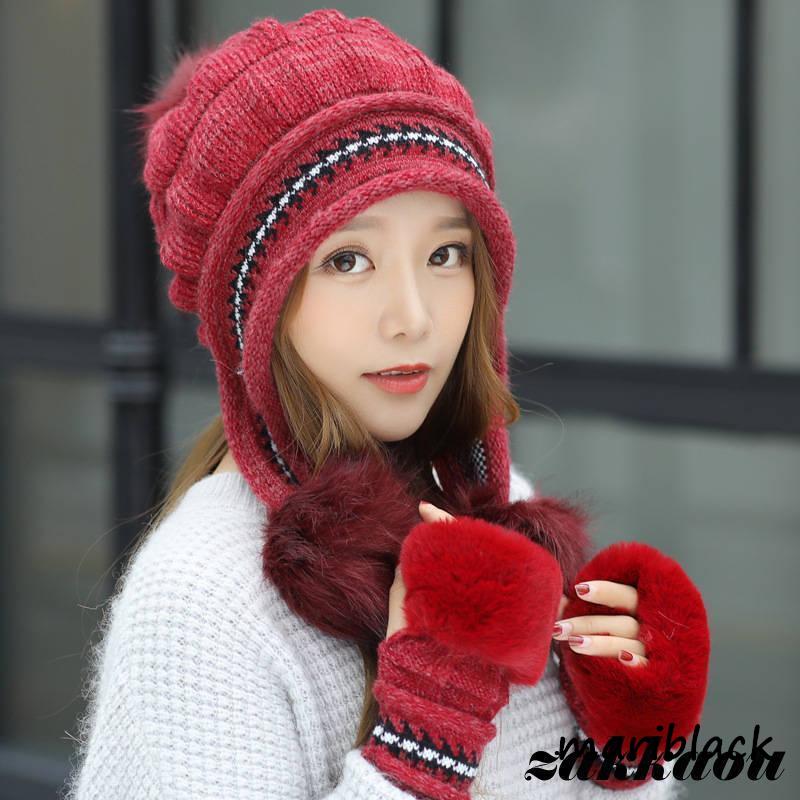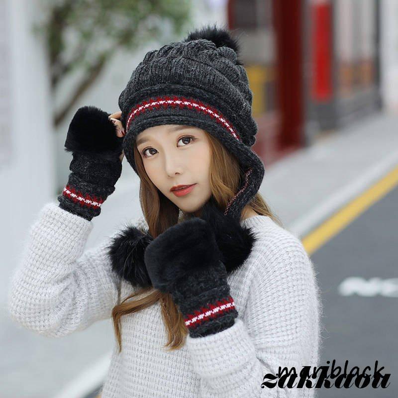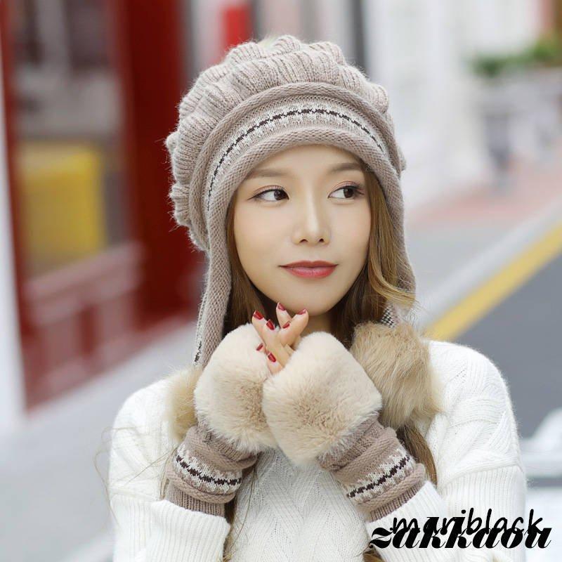 ニット帽 レディース 帽子 ニット 耳あて付き 2点セット 手袋 小顔効果 防寒 キャップ カジュアル 裏起毛 バイク もこもこ 通学 可愛い
