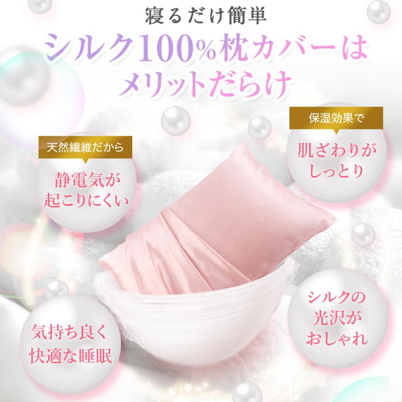 本物シルク 枕カバー まくら 紐タイプ シルク100% ヘアケア 保湿 19匁 最高級6Aシルク 寝癖 美髪 53*74