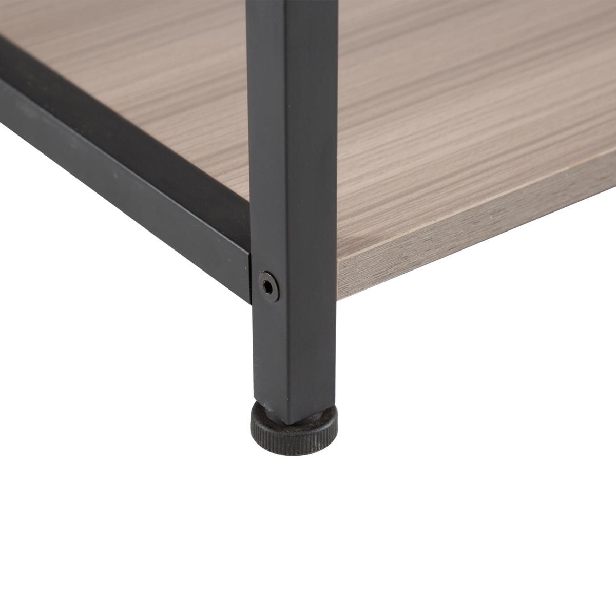 6.【細かいこだわり】棚にフックがついたパイプが設計されて、バッグなども掛けられる。アジャスターが搭載され、不快なガタつきを防ぎつつ、安定感を向上できる。
