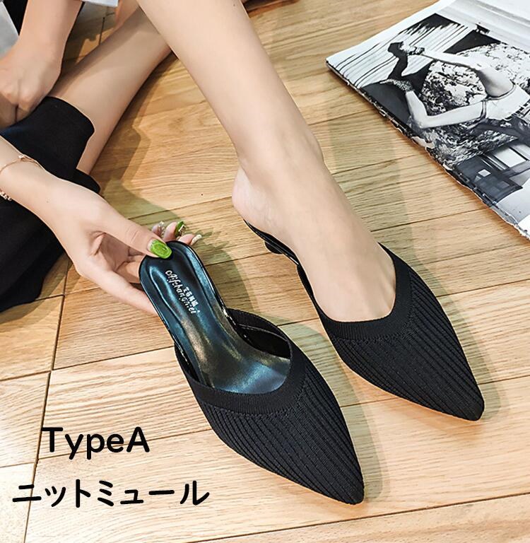 ミュール パンプス ポインテッドトゥミュール レディース ヒール サンダル スリッポン ローファー