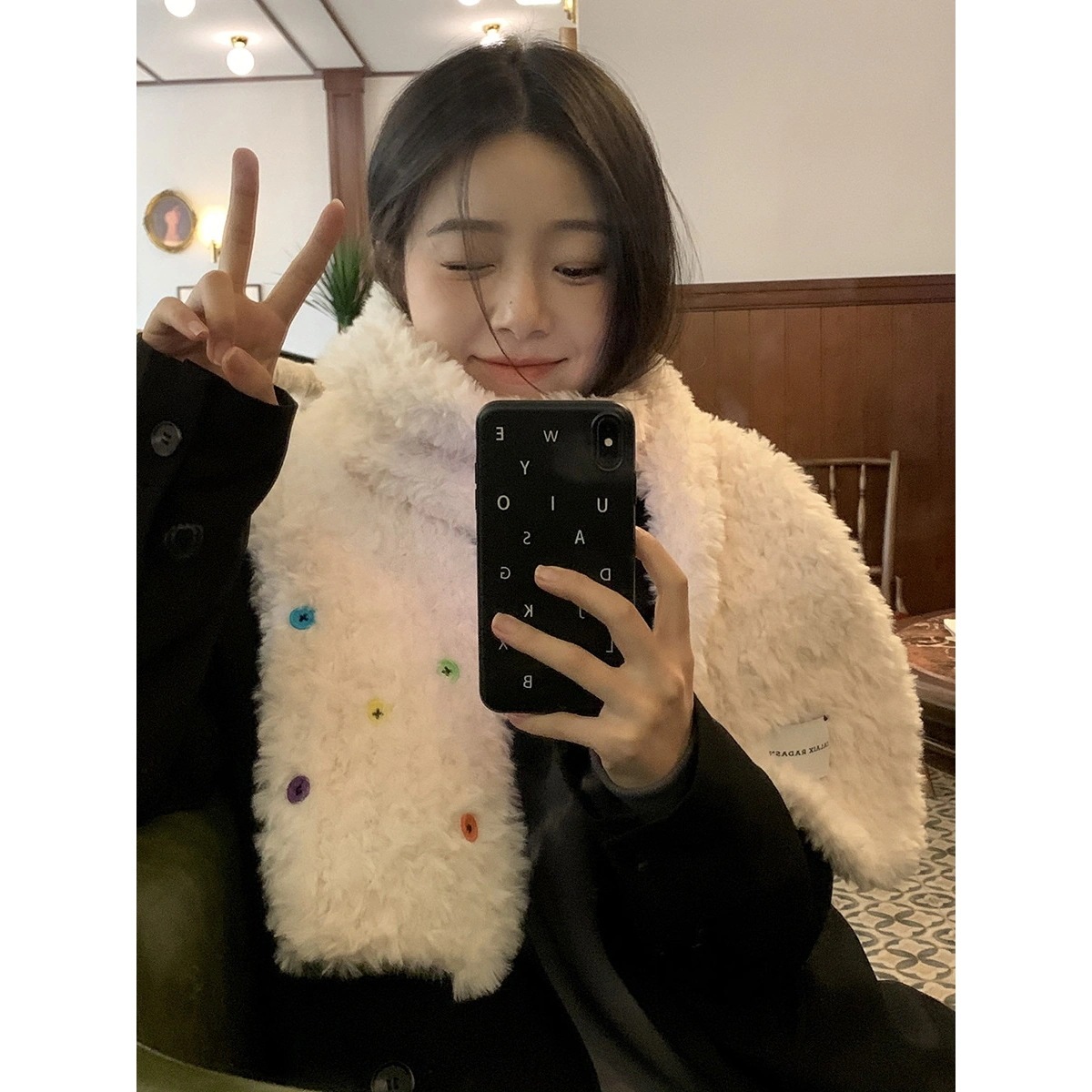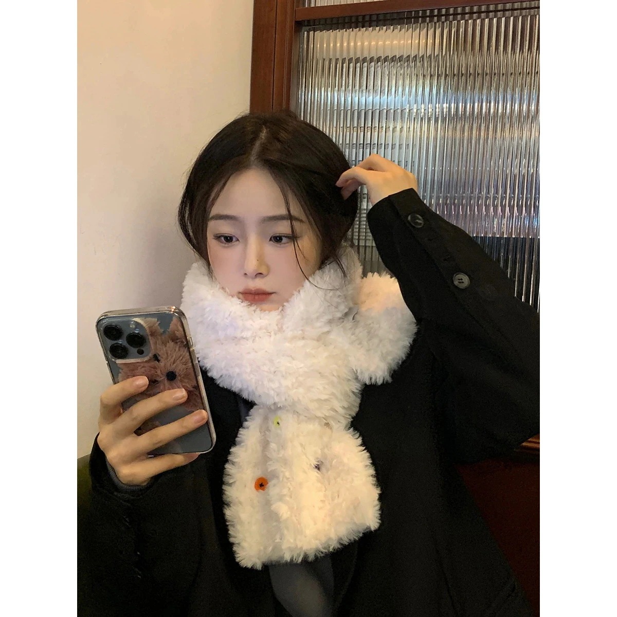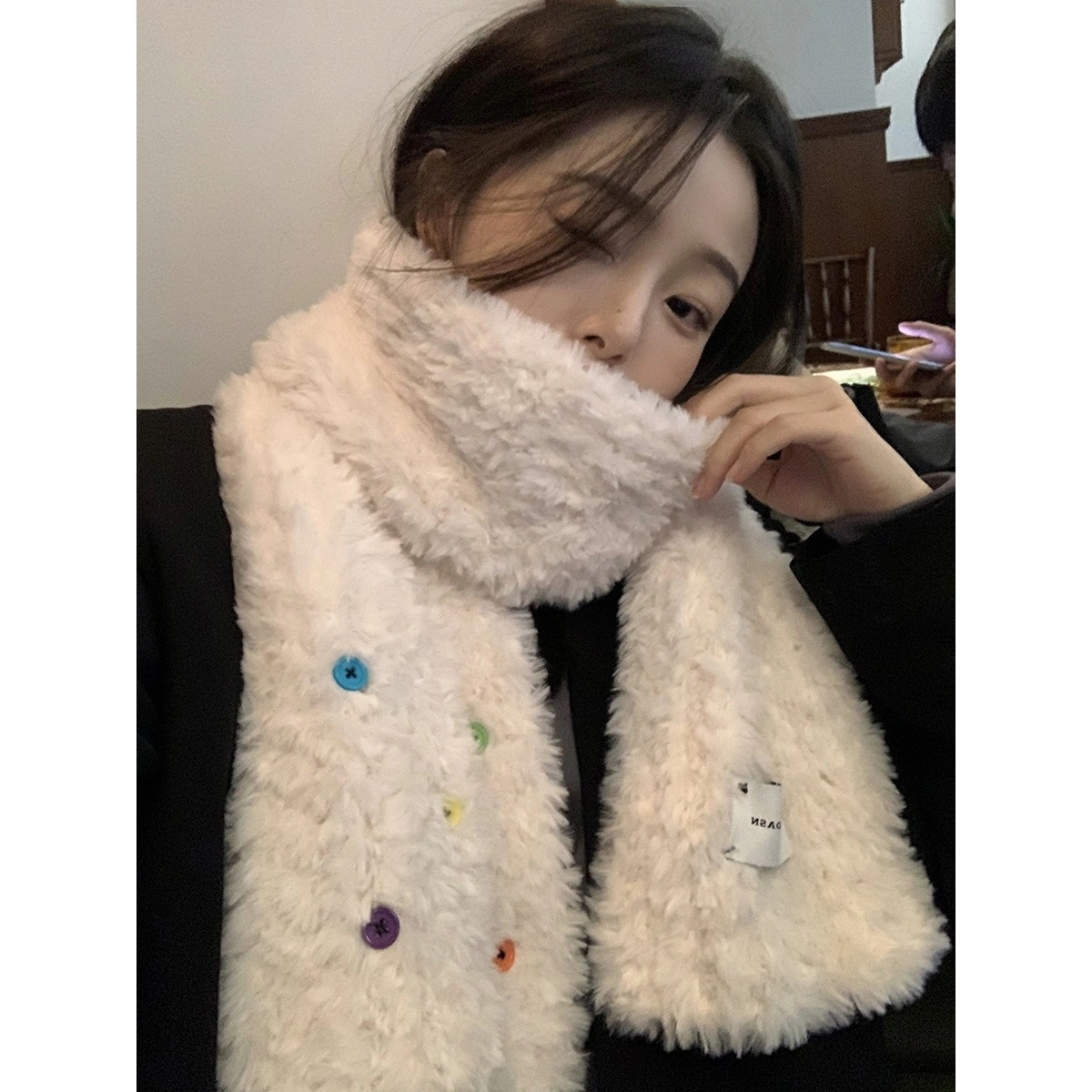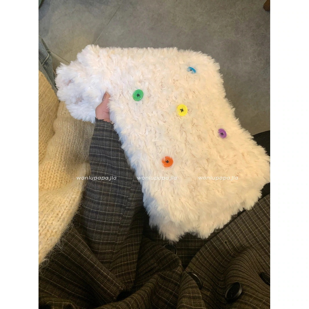 スト一ルマフラ一 韓国ファッション ボタンプラッシュ スカーフ 秋冬厚手防寒 ふわふわ ハット 学生スカーフデイリーマフラー マフラー