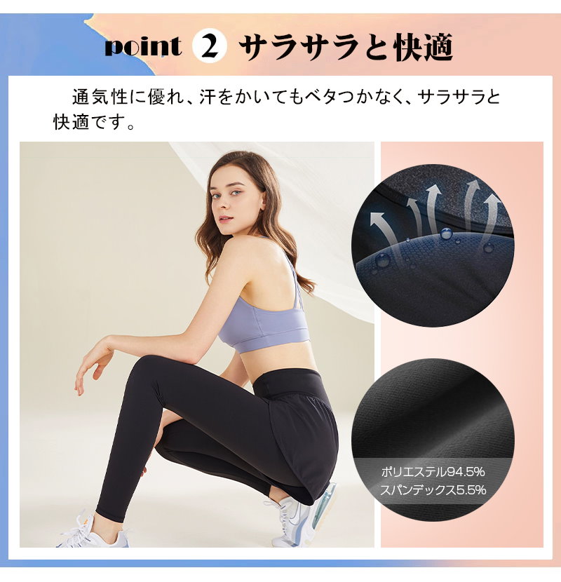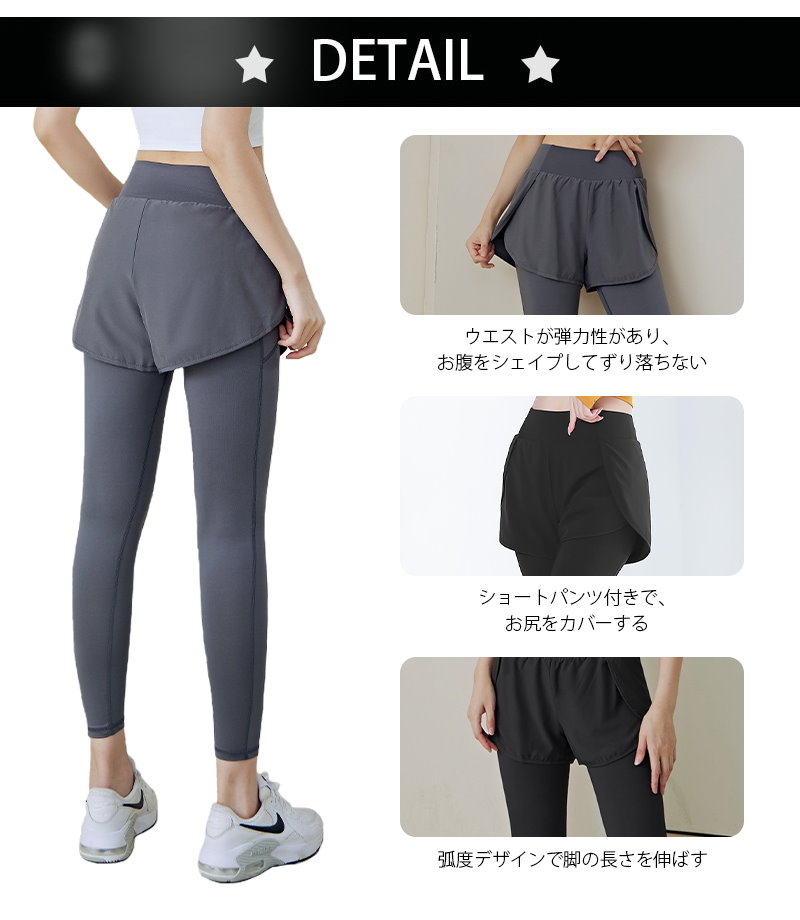 ヨガパンツ ショートパンツ 一体型 レギンス レディース 9分丈 スパッツ 吸汗速乾 ハイウエスト ヨガウェア ストレッチ パンツ付きレギンス スポーツウェア ランニング トレーニング ウォーキング