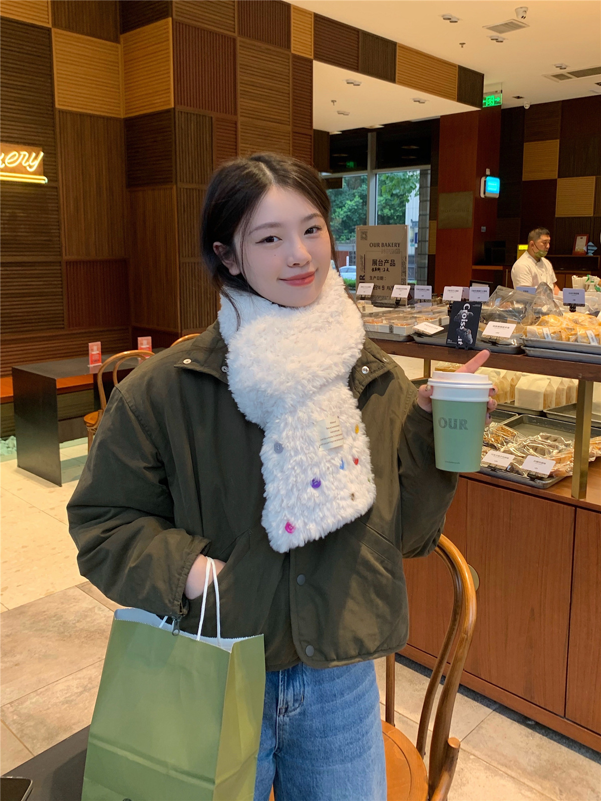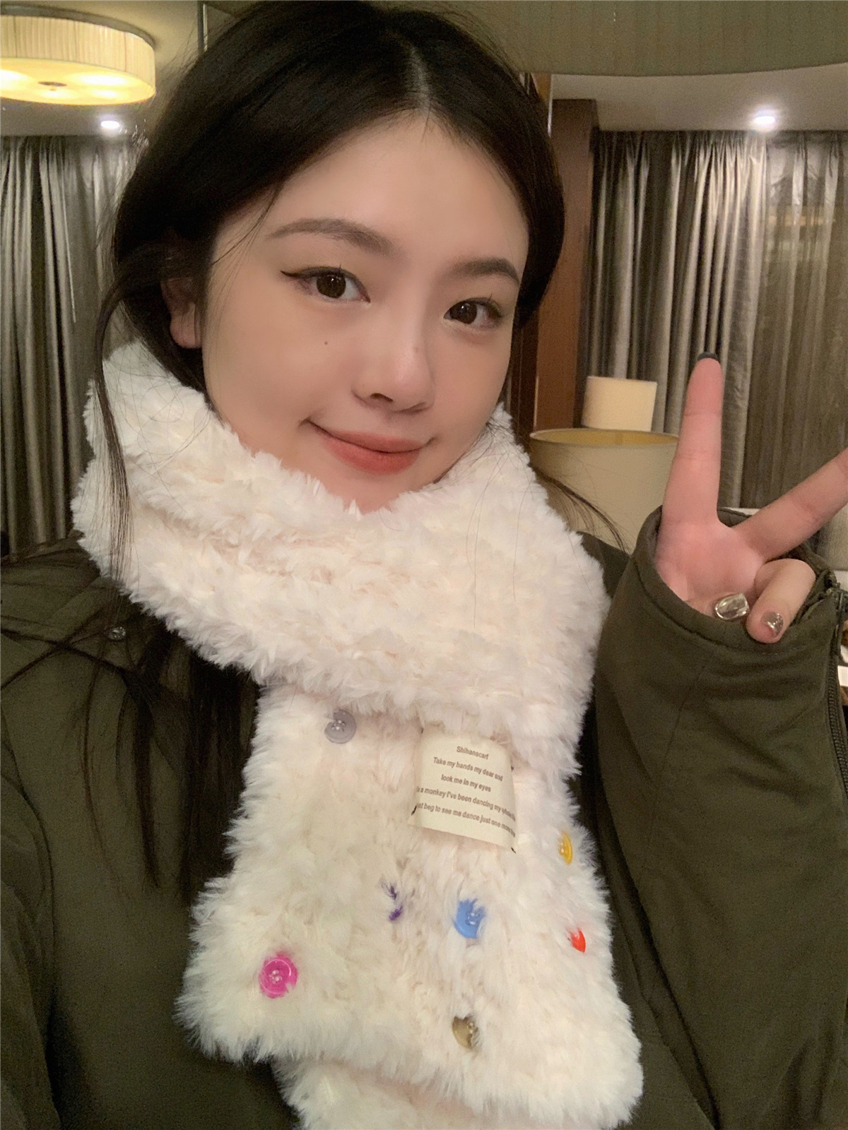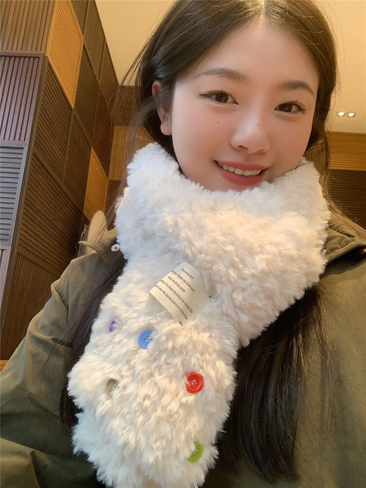 デイリーマフラー スト一ルマフラ一 韓国ファッション ボタンプラッシュ スカーフ 秋冬厚手防寒 ふわふわ ハット 学生スカーフデイリーマフラー