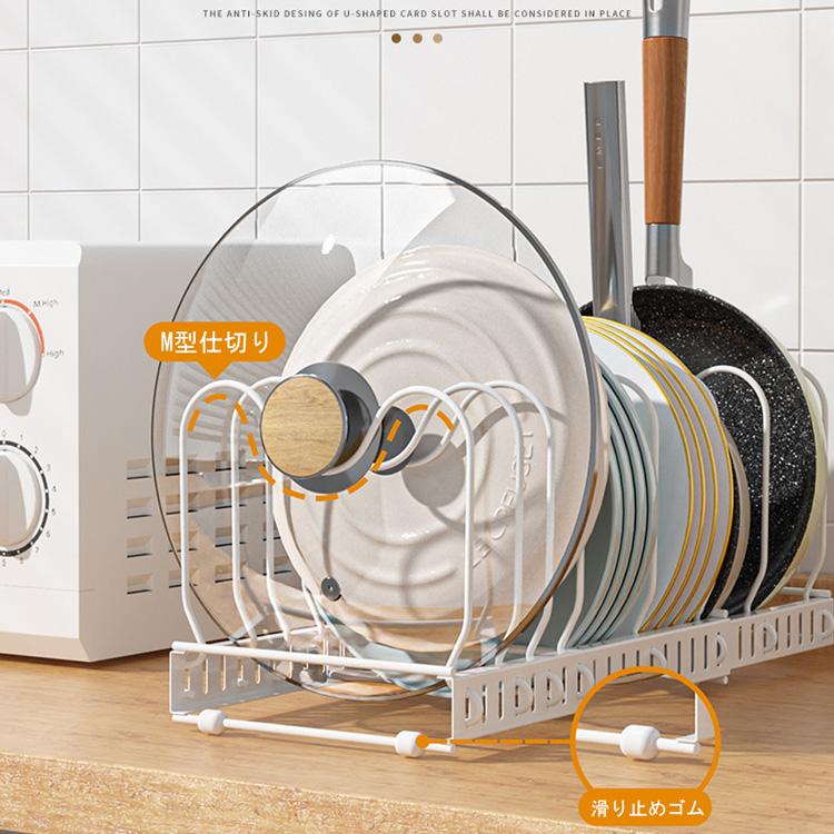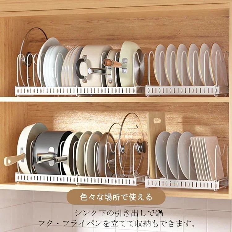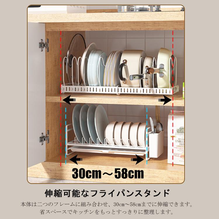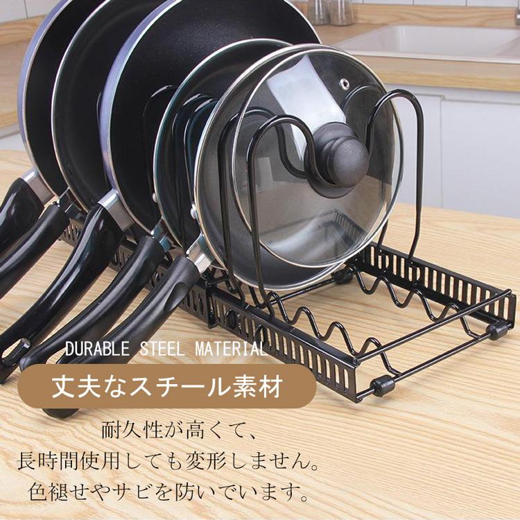 シンク下 伸縮式 フライパン収納 スタンド 鍋ラック キッチン収納 収納ラック 多機能 鍋蓋 ラック 鍋ふたスタンド キッチン 鍋置きラック シンク下 収納 仕切り
