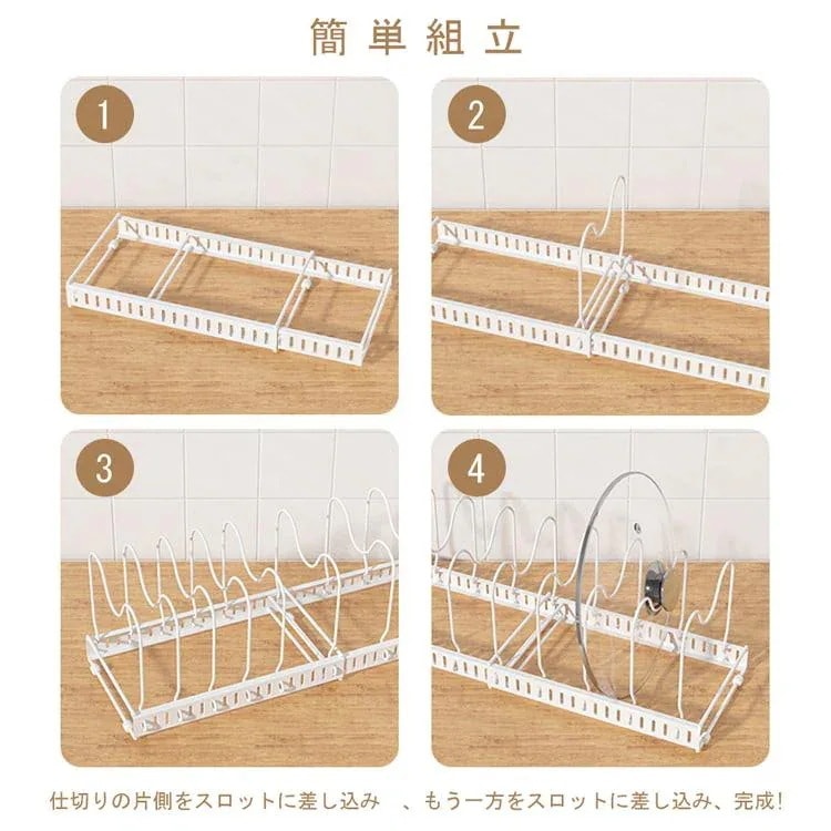 本のM型仕切りは鍋、フライパン、蓋などの大きさによって自由に装着できます。