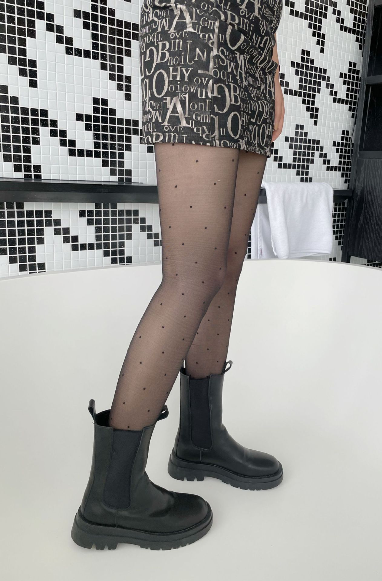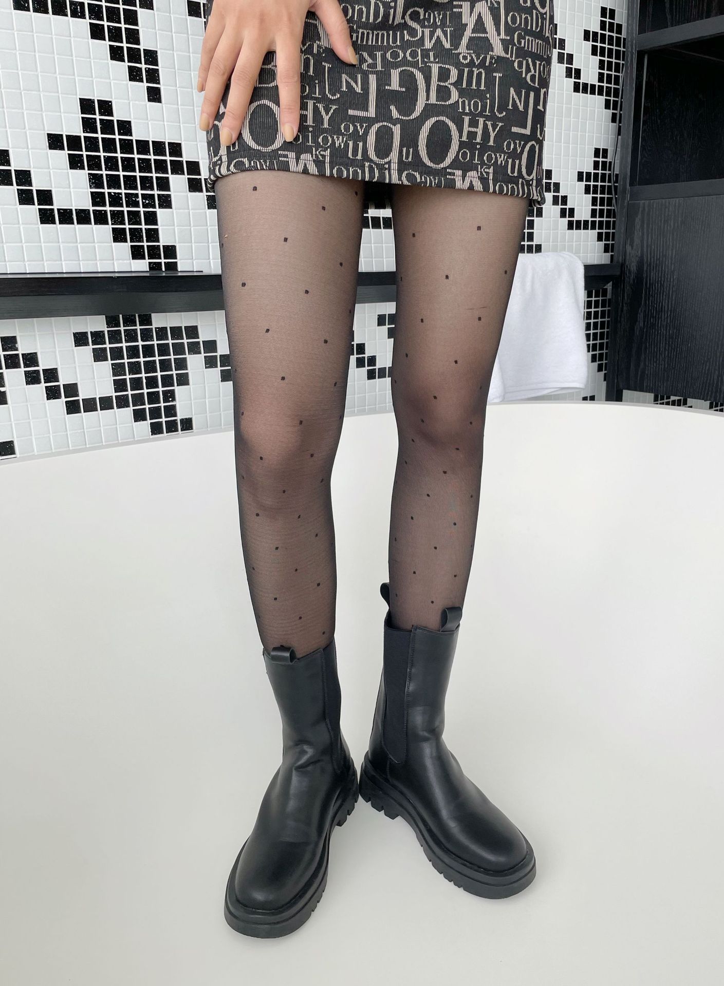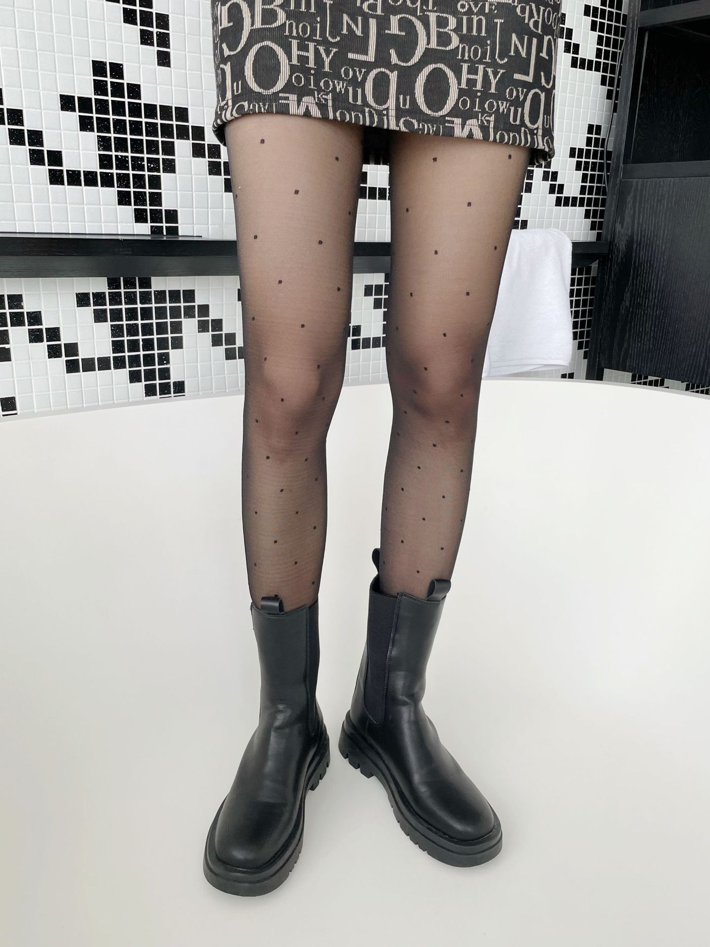 三点セット 優しいレトロなドット水玉レース白ストッキング黒絹パンスト ストッキング
