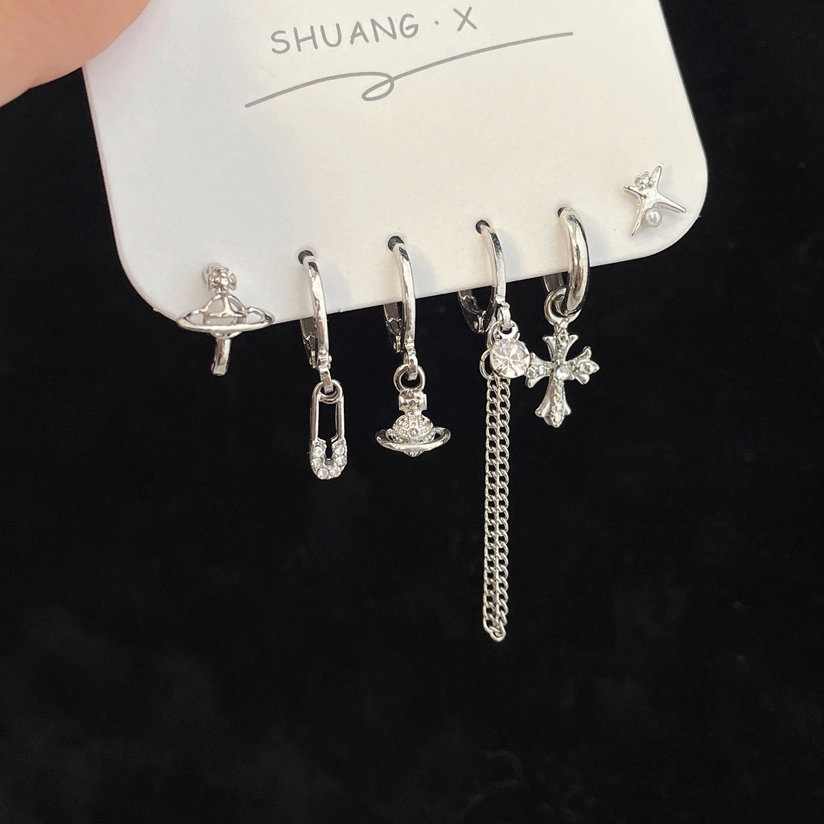 ピアスペンタグラムピアス スターピアス バックルセット ニッチピアス クロスピアス スタッドピアス ピアス