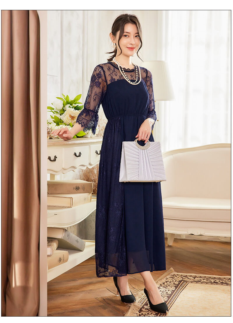 パーティードレス 結婚式 お呼ばれ ロング丈 20代 30代 40代 個性的 マキシ丈 大きいサイズ パーティー ワンピース お呼ばれドレス ドレス 入学式 卒業式 袖あり emile0193
