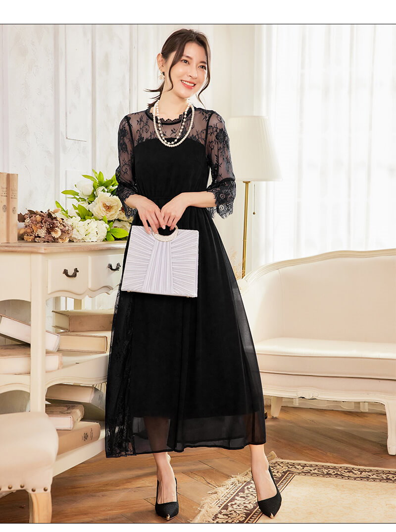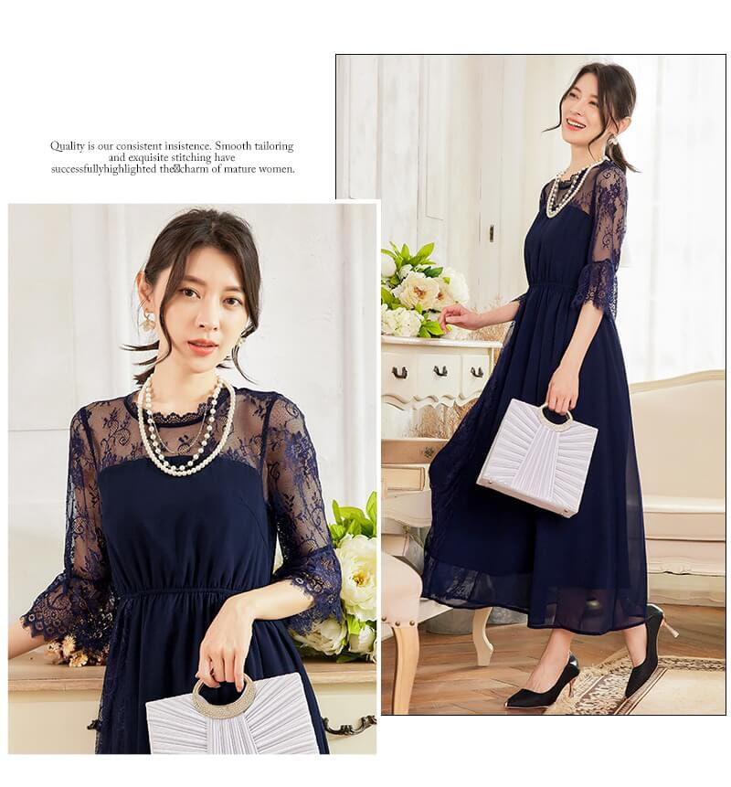 上品な印象のワンピースなので、結婚式・二次会などの華やかなシーンはもちろん、