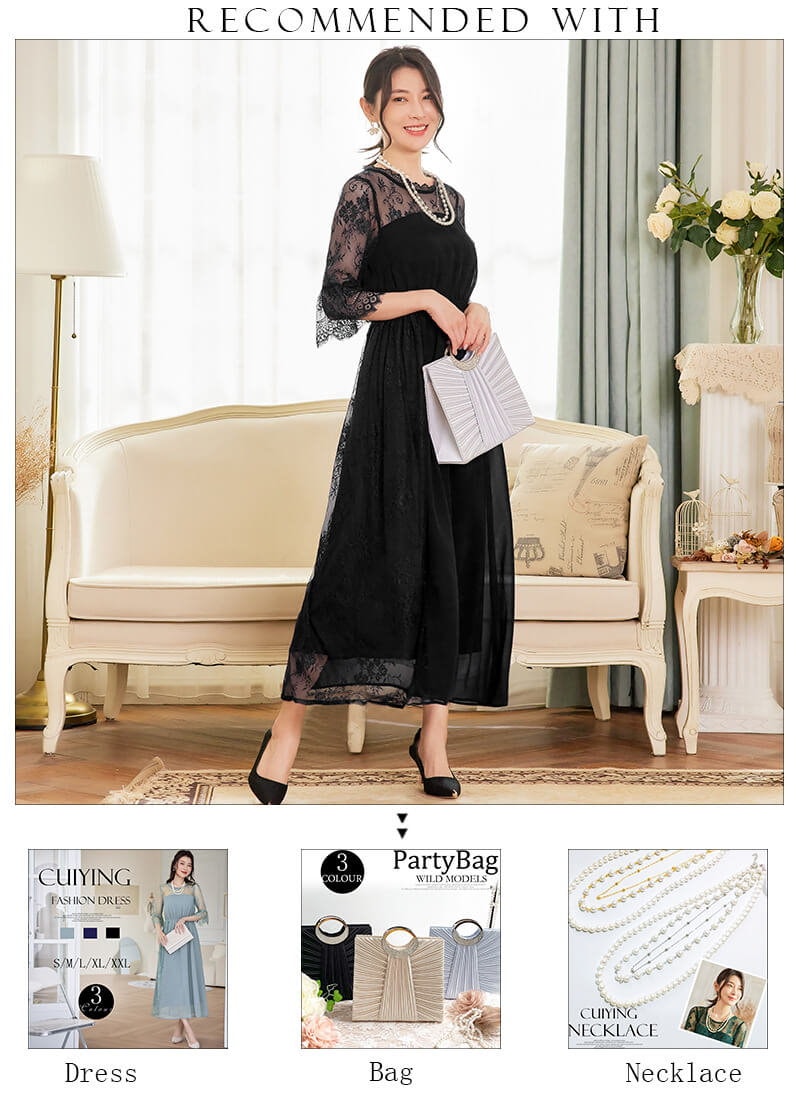 シーンを選ばす、着回せて使いやすいワンピースドレスです