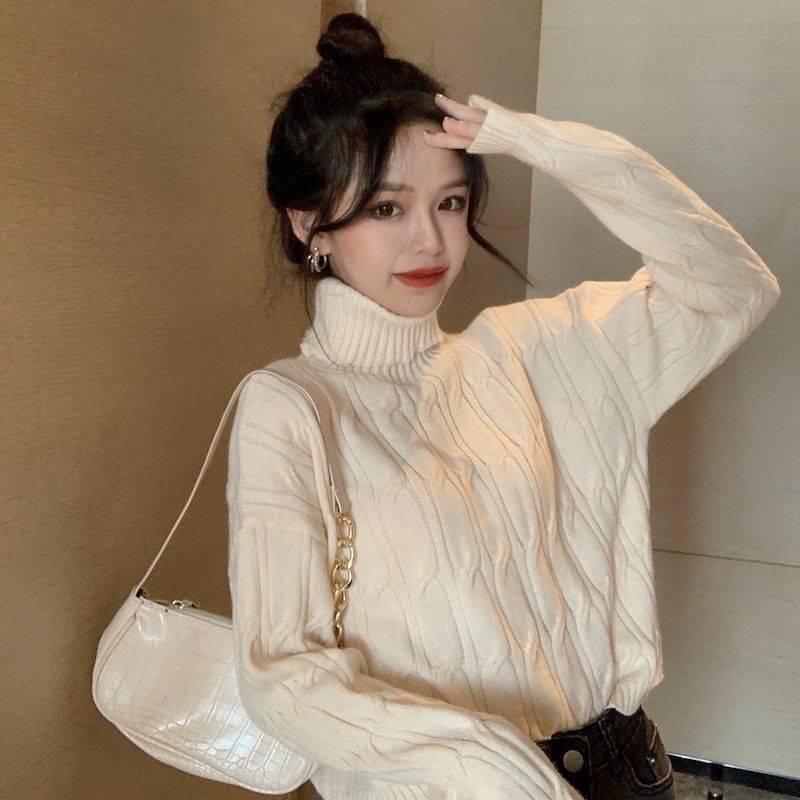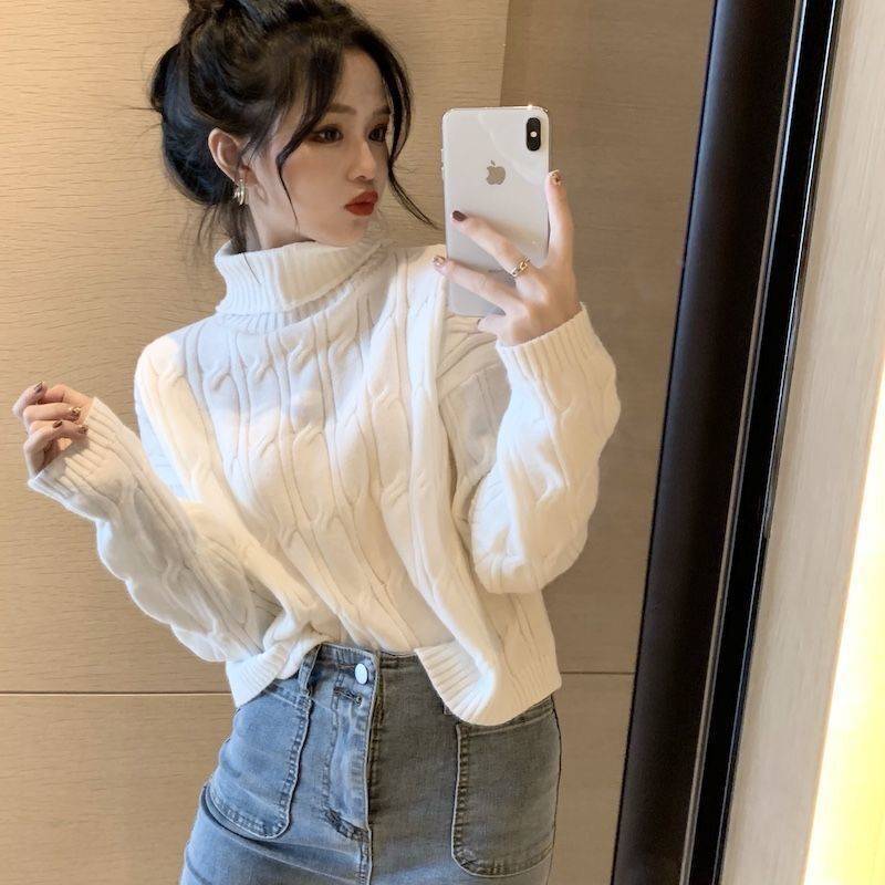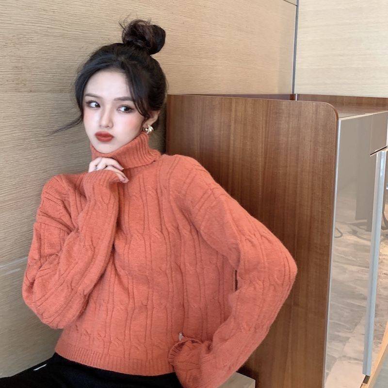 韓国ファッション裹起毛 長袖 ハイネックニットインナー カシミヤタッチ タートルネックセーター レディース百掛け ニットトップス ニット