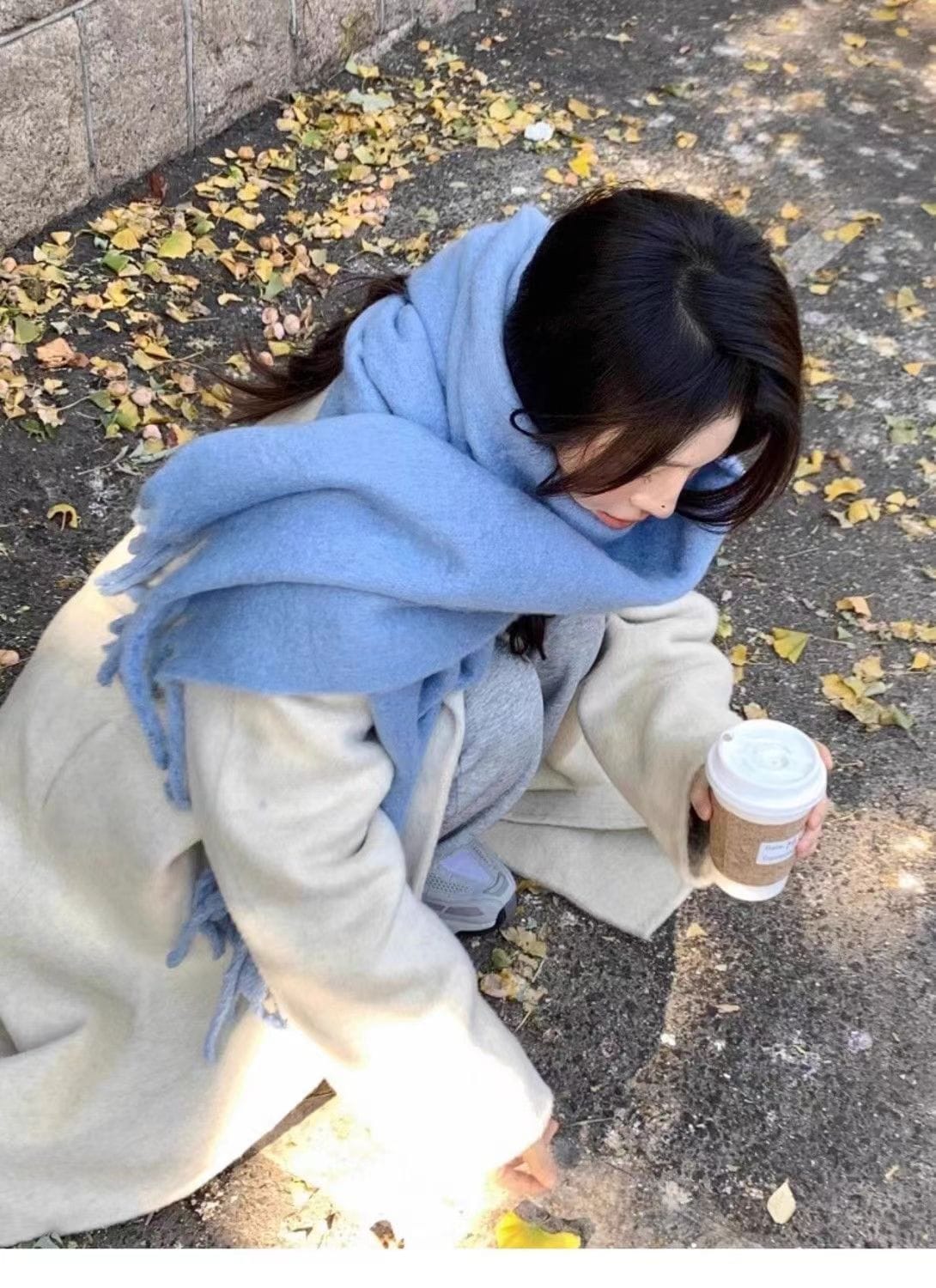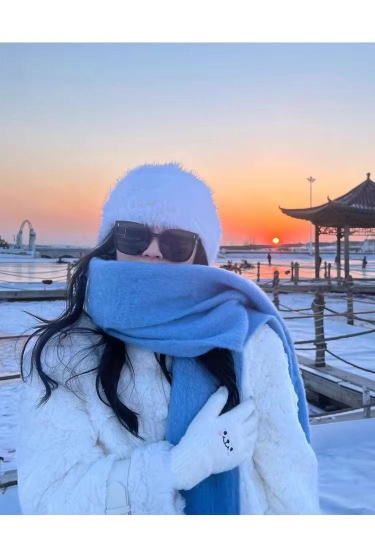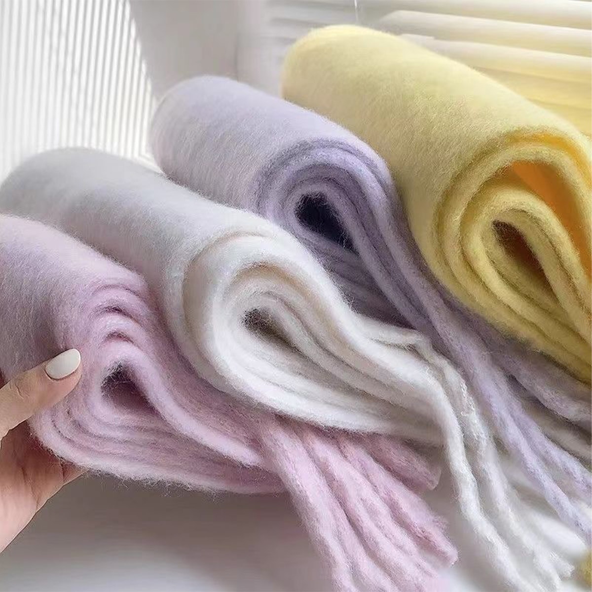 マフラー レディース ストール ショール ふわふわ 起毛 ボリューム 230*35cm 大判 太フリンジ 無地 ロング丈 秋冬 マフラー