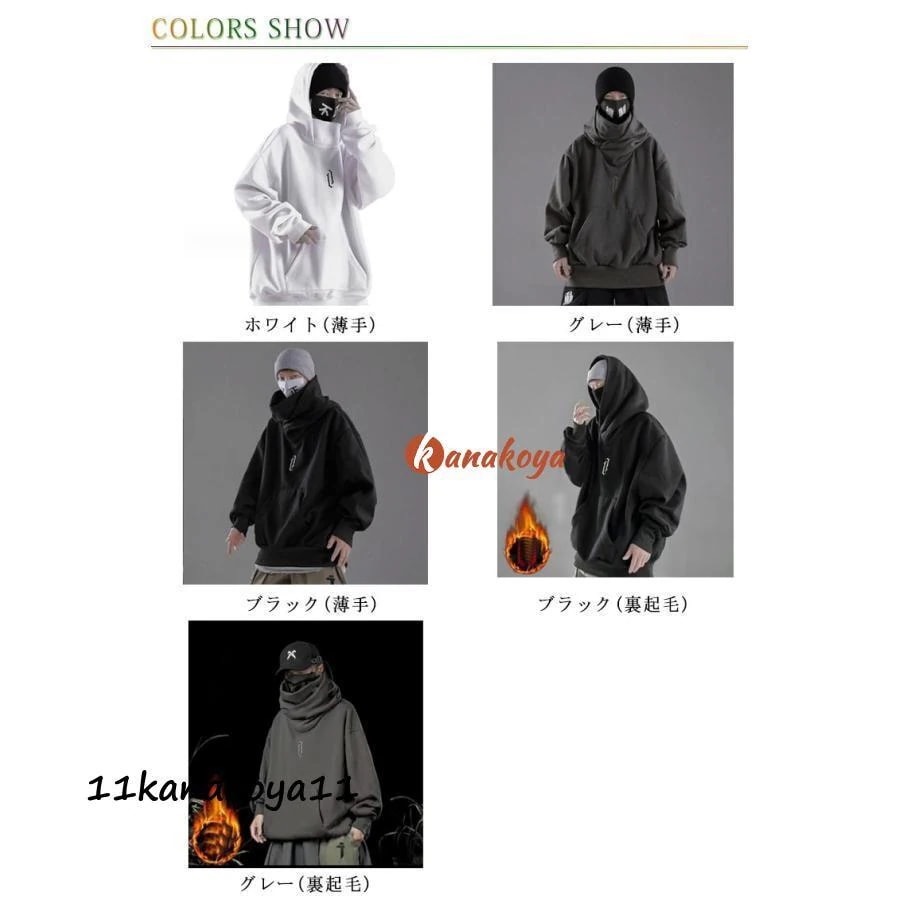 Color: グレー(薄手) グレー(裏起毛) ブラック(薄手) ブラック(裏起毛) ホワイト(薄手)