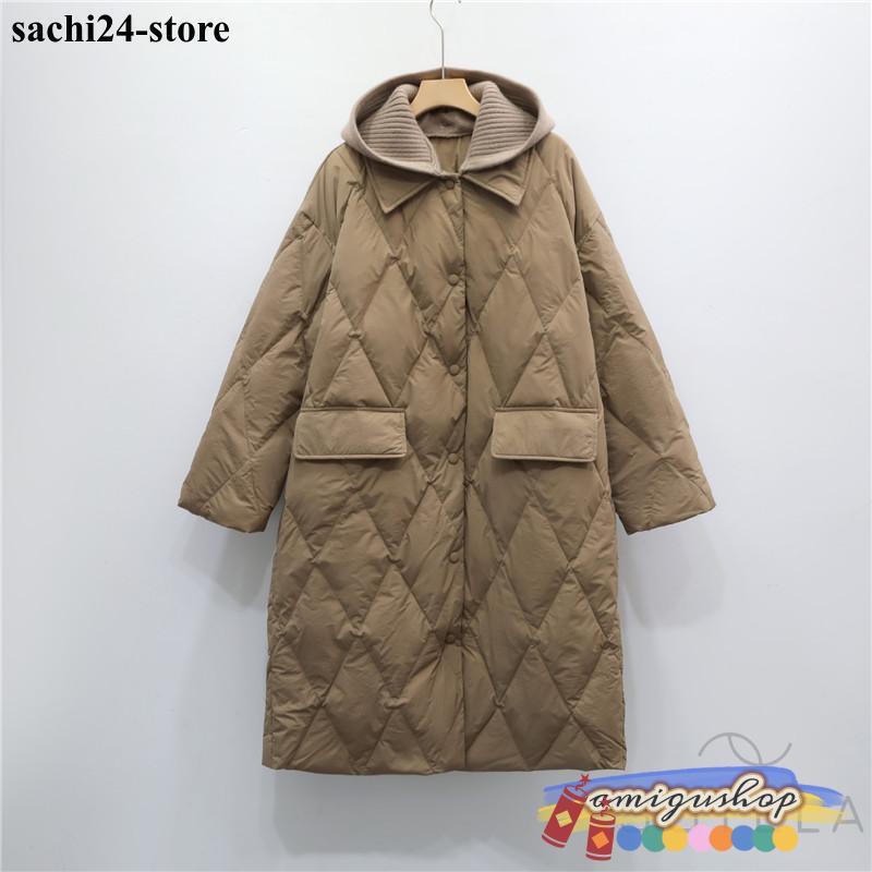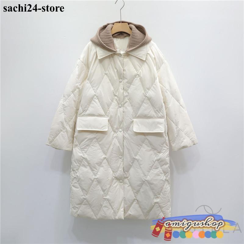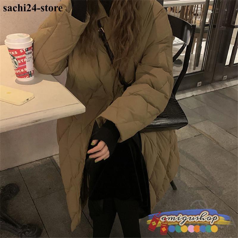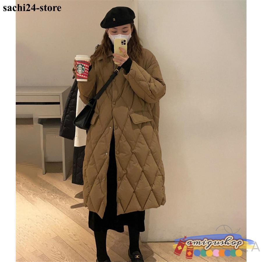 ダウンコートレディース 冬服 ロング丈 折襟 ボタンダウン 無地 秋冬 ダウンジャケット キルティングダウン 厚手 膝丈 ゆったり 暖かい 保温 防寒 羽織り