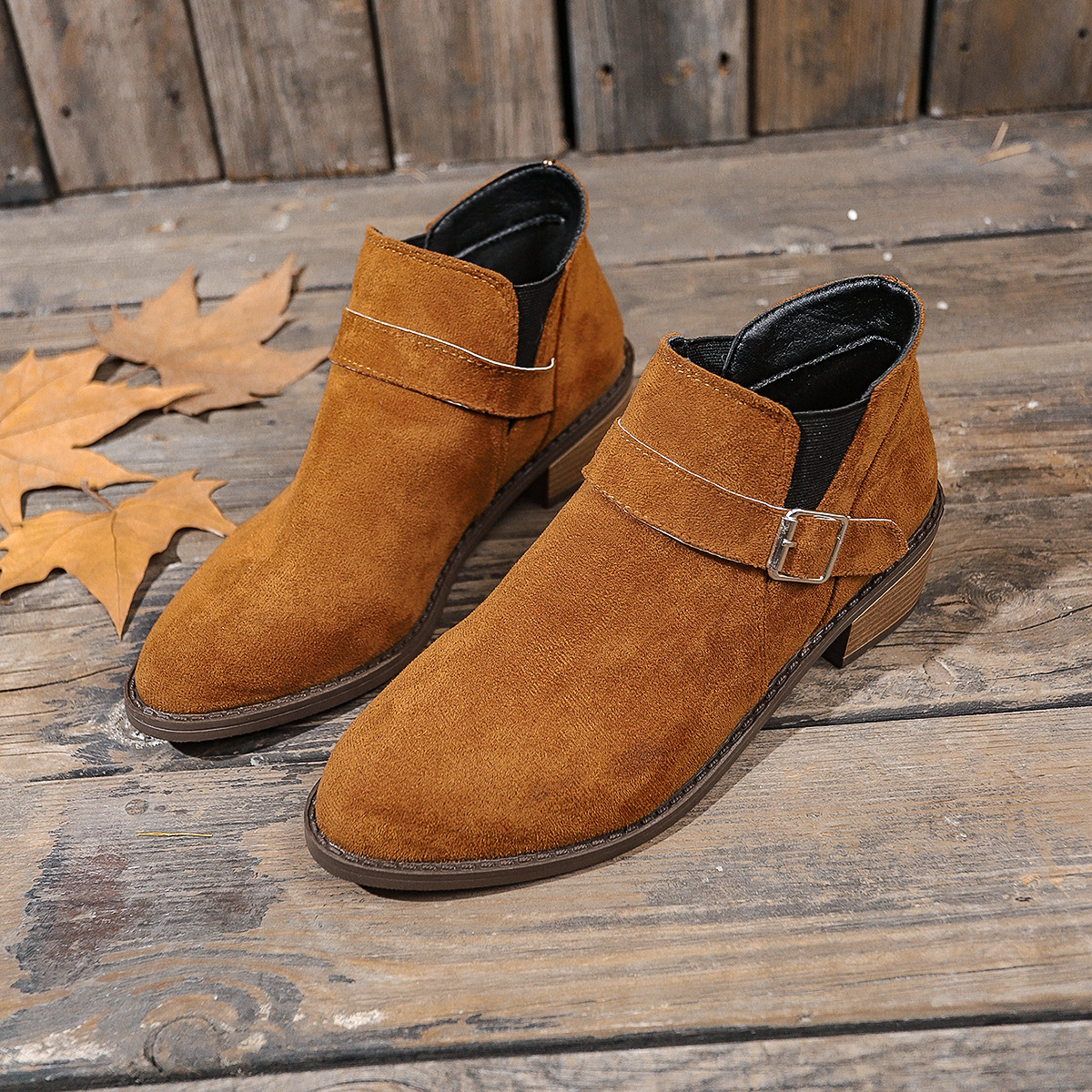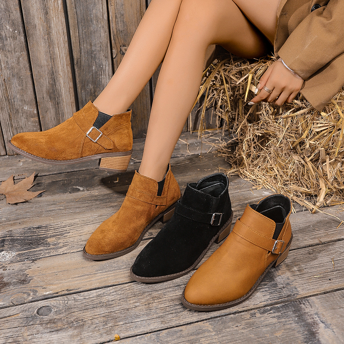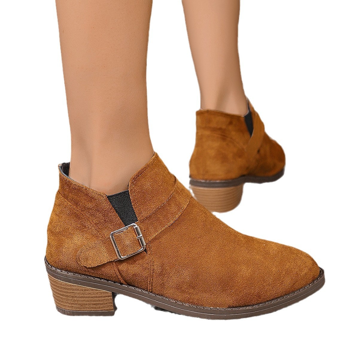 2024 冬の女性のスエードラバーファッションブーツ太いヒールポインテッドトゥショートブ婦人靴 ショート ミドルブーツ