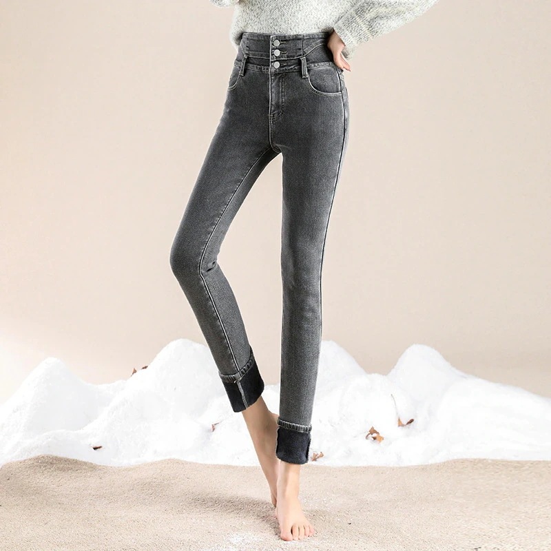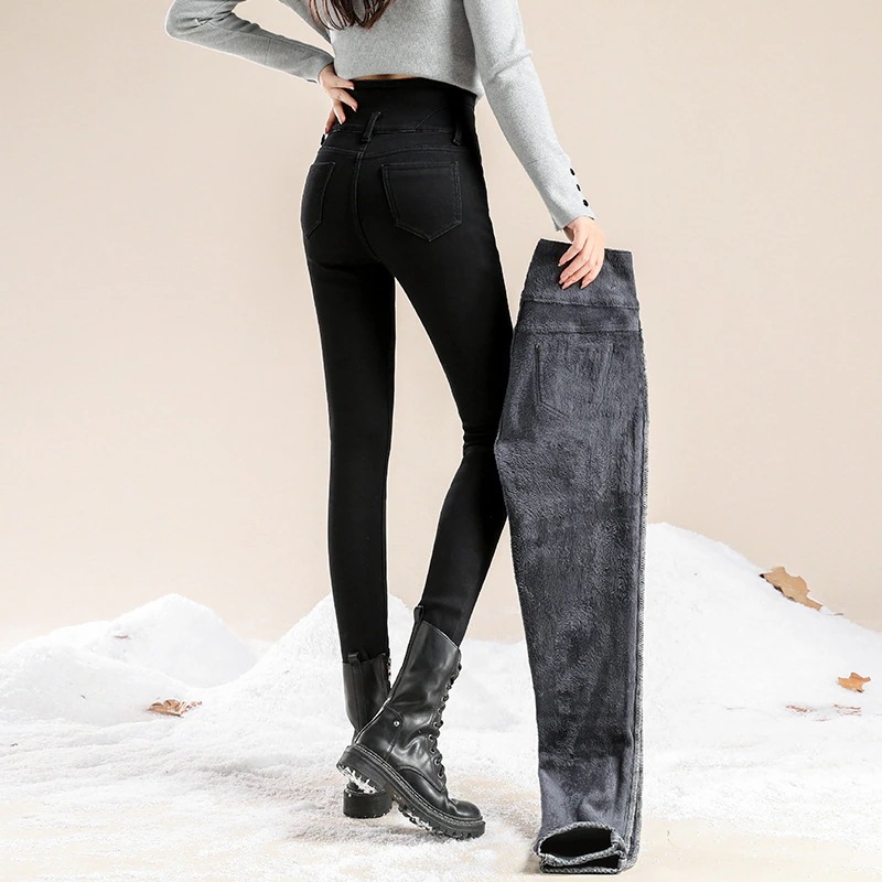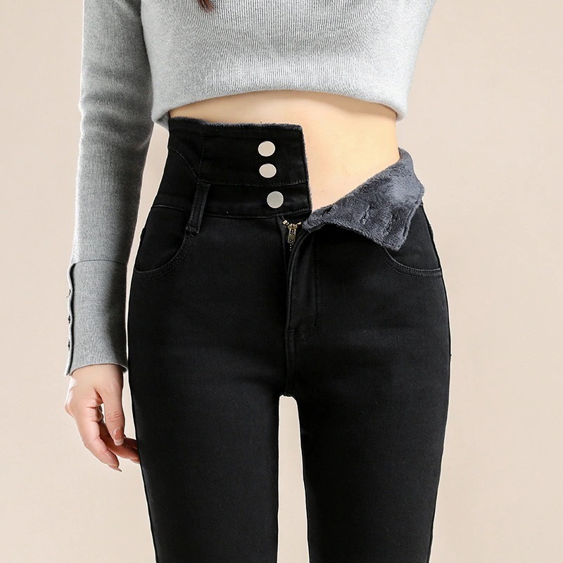 かっこいい スラックスパンツスキニーパンツ3段ブレストタイト 裏起毛パンツレディース韓国ファッションスリム着痩せ小柄ハイウェスト秋冬