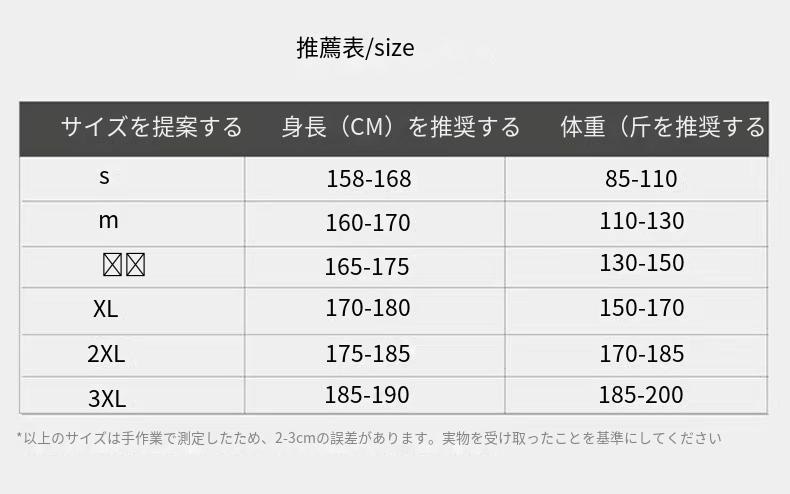 Size: S(40-55)kg M(55-65)kg L(65-75)kg XL(75-85)kg 2XL(85-90)kg 3XL(90-100)kg