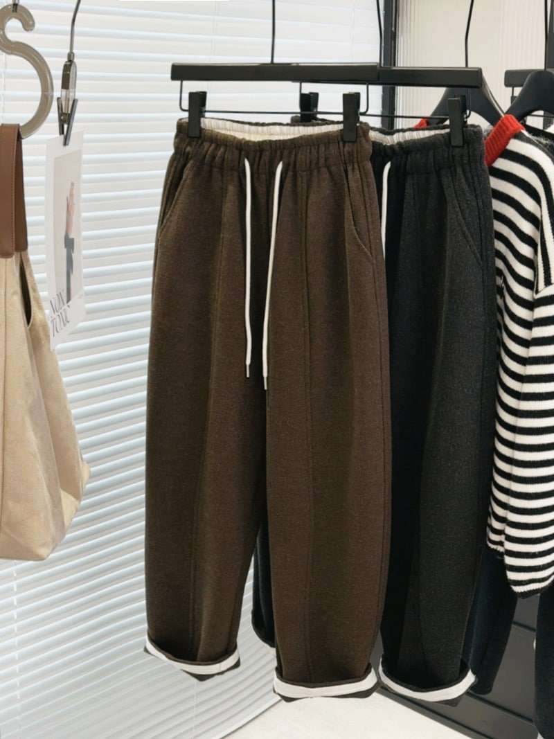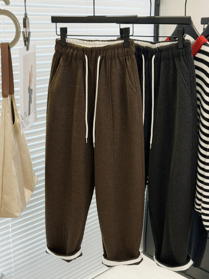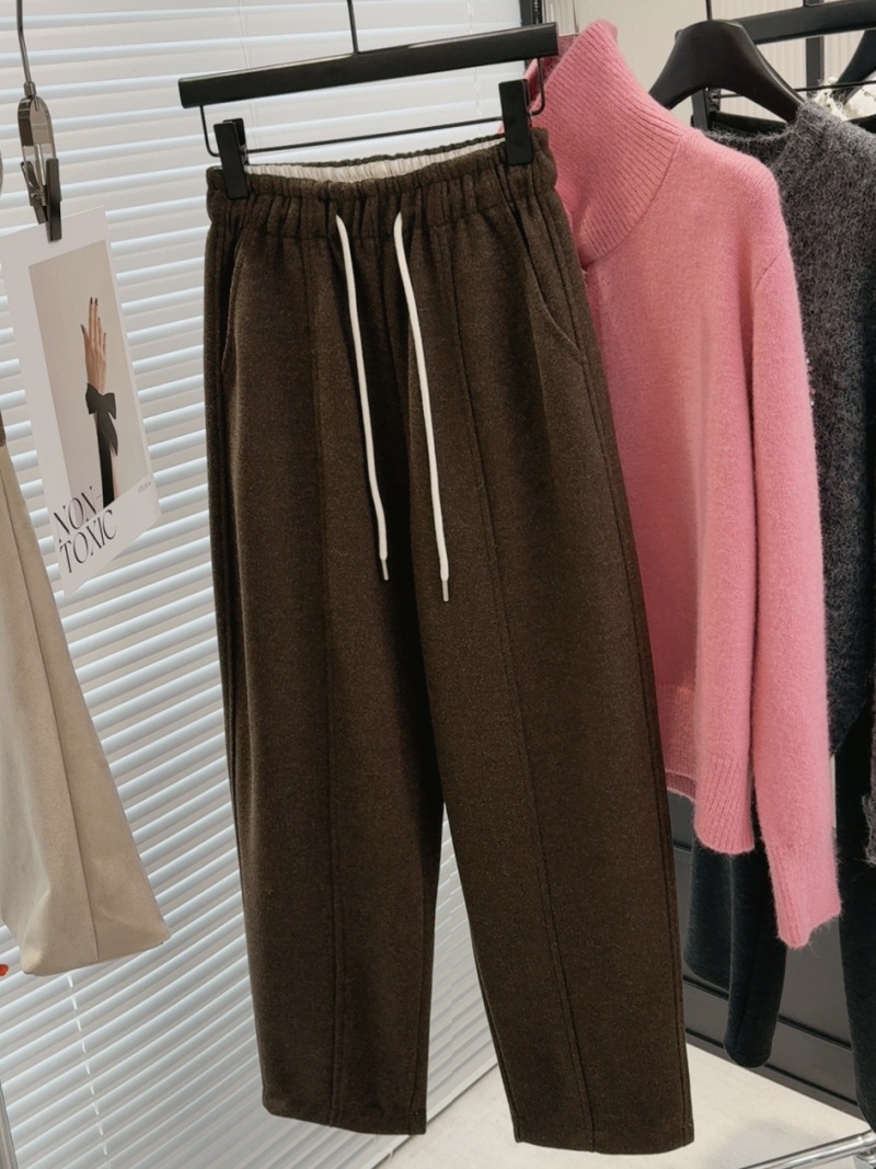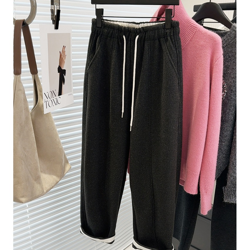 ハーレムズボンの女性秋冬のゆったりとしたカジュアルパンツの灰色の毛のズボンの垂れ下がった感じのウールの円錐形のズボン ロングパンツ