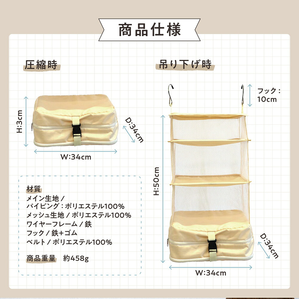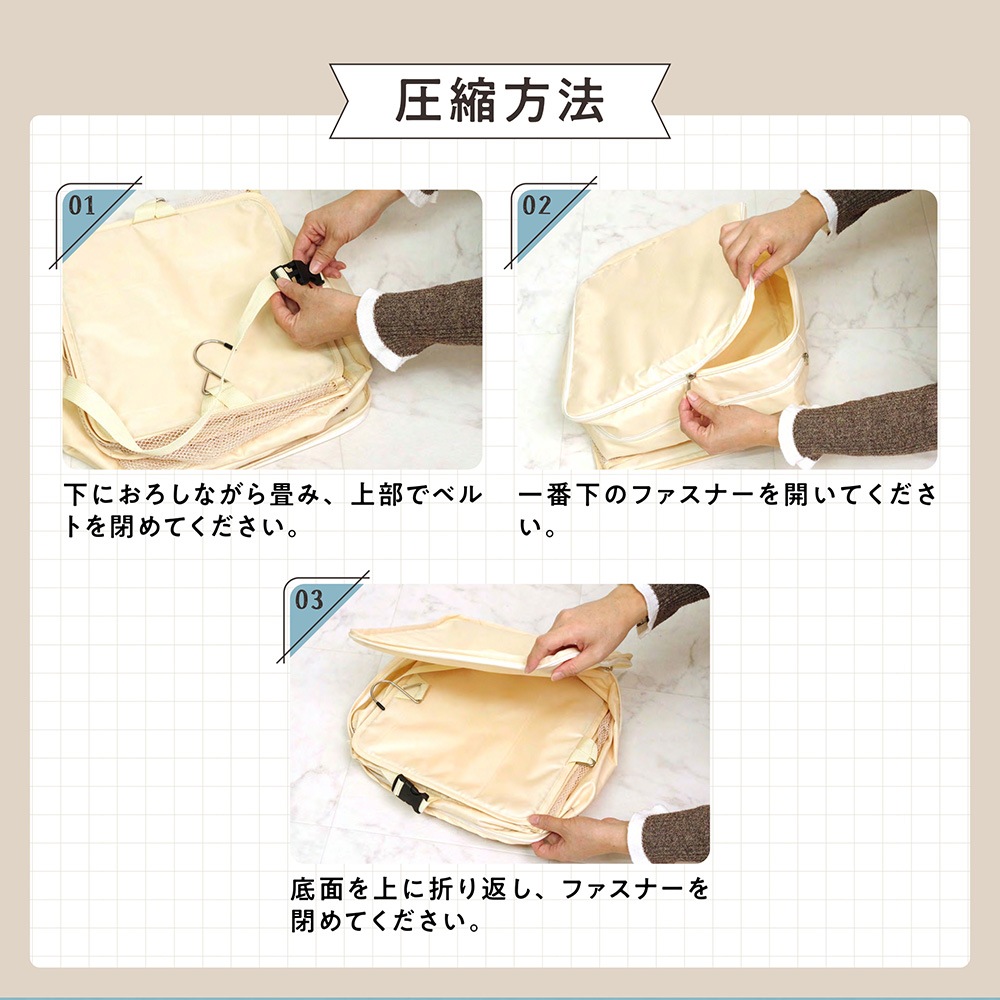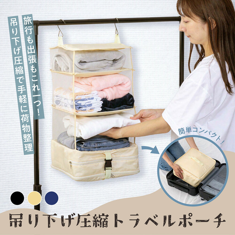 GLOBAL JAPAN 新商品 吊り下げ 圧縮収納ポーチ 旅行用圧縮袋 トラベルポーチ 圧縮バッグ 収納ポーチ ファスナー 軽量 出張 旅行 便利グッズ 衣類仕分 簡単圧縮