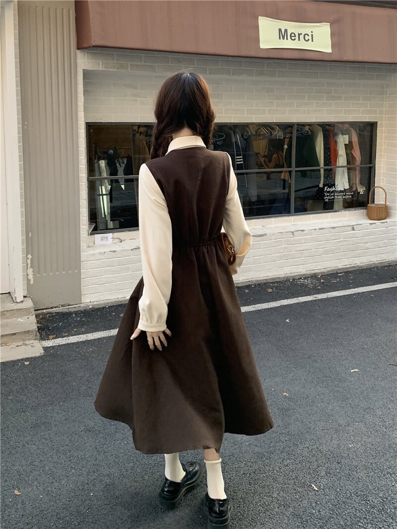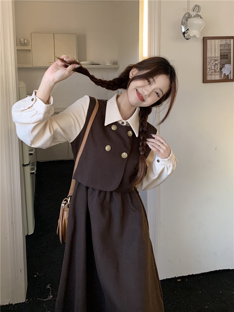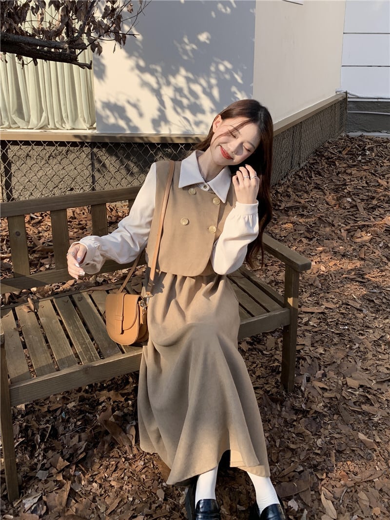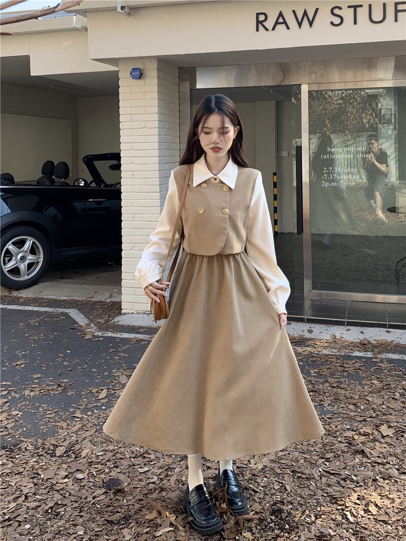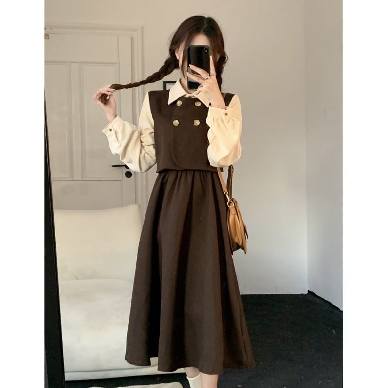クラシカルワンピース ワンピ 長袖 Aライン トレンド シンプル レトロ クラシカル 大人可愛い 韓国ファッション その他 ワンピース ドレス