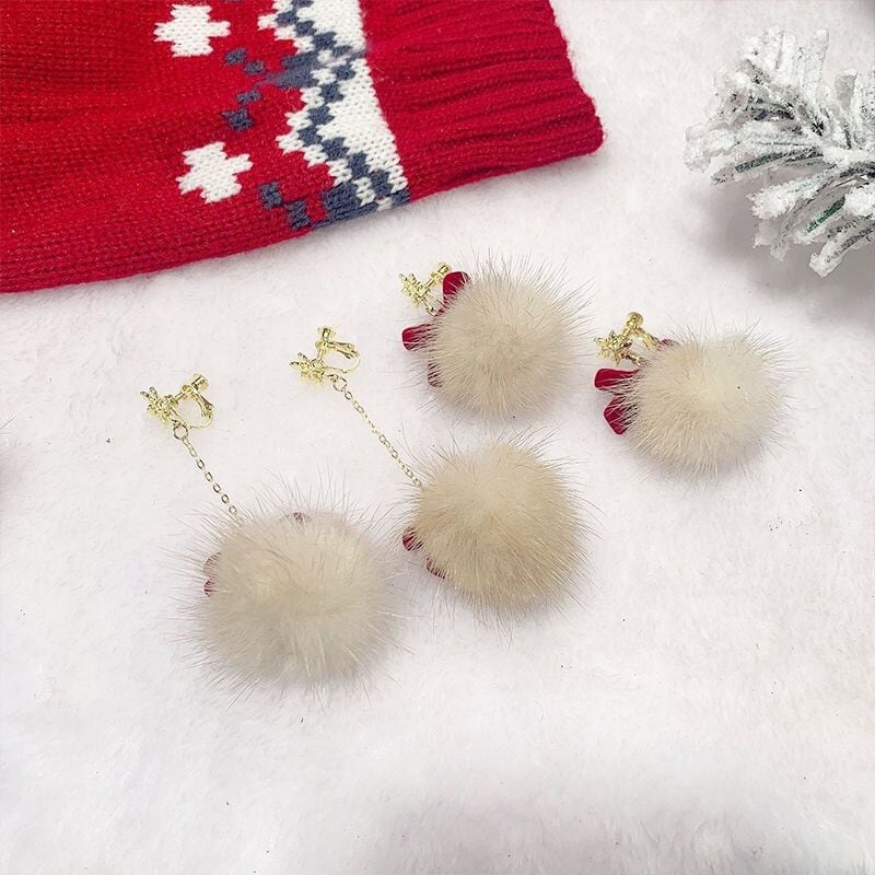 クリスマス ポンポン 可愛い ペア 小物 レディース ピアスorイヤリング イヤリング
