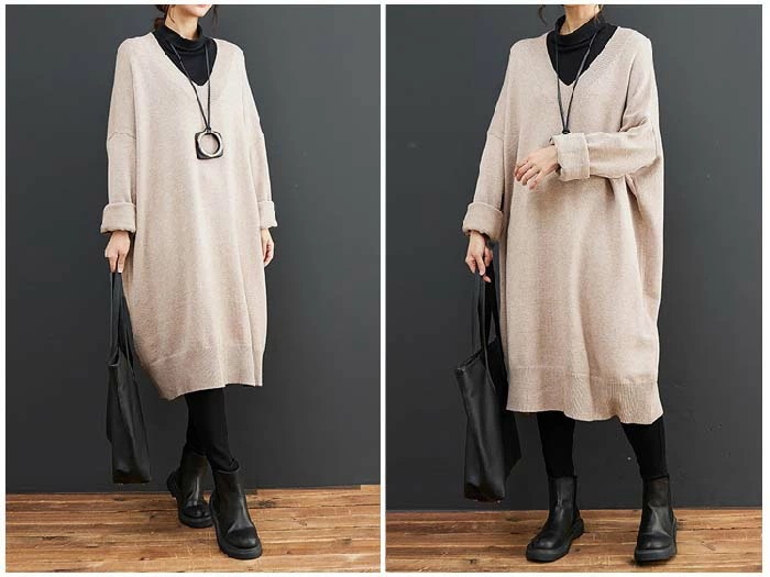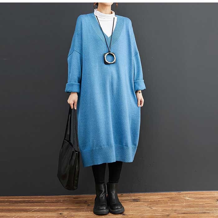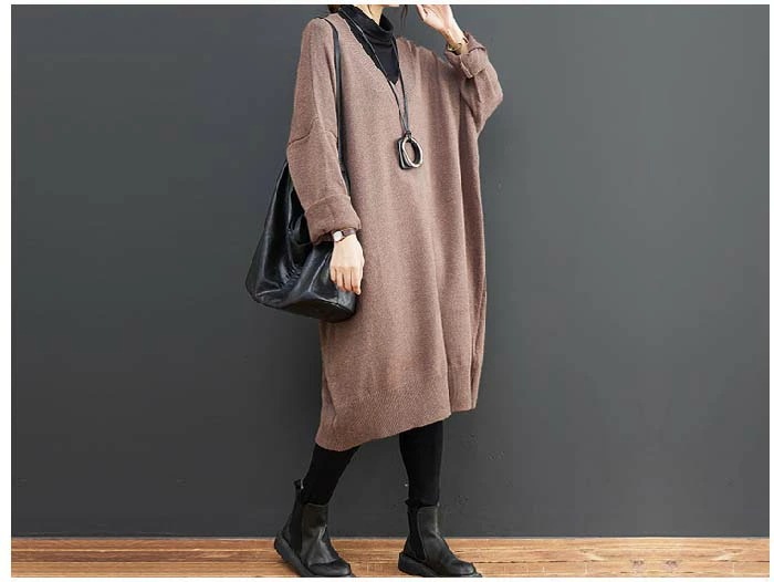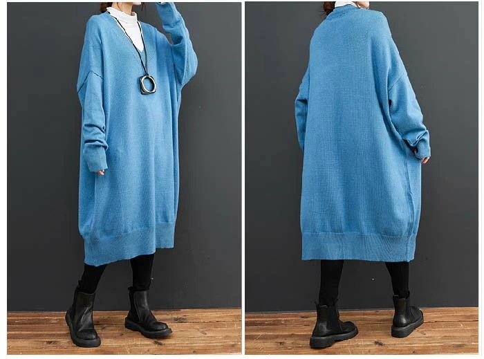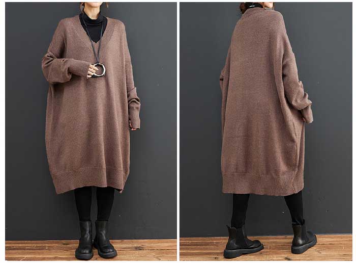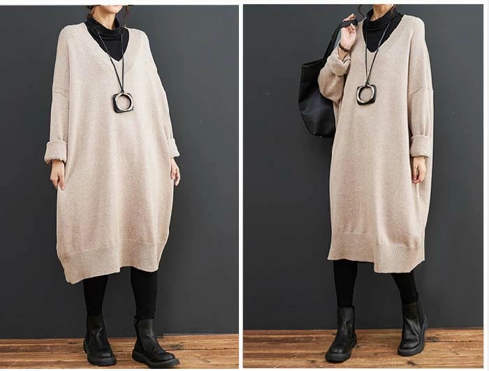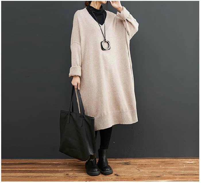 ワンピース レディース 長袖 Vネック ニット ワンピース ニットワンピース 春 秋 初秋 秋 冬 ワンピース ロング丈 ゆったり シンプル カジュアル 体型カバー 柔らか 暖か 女性らしい 着心地
