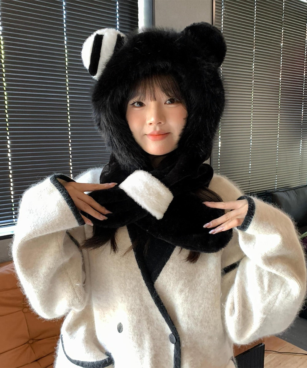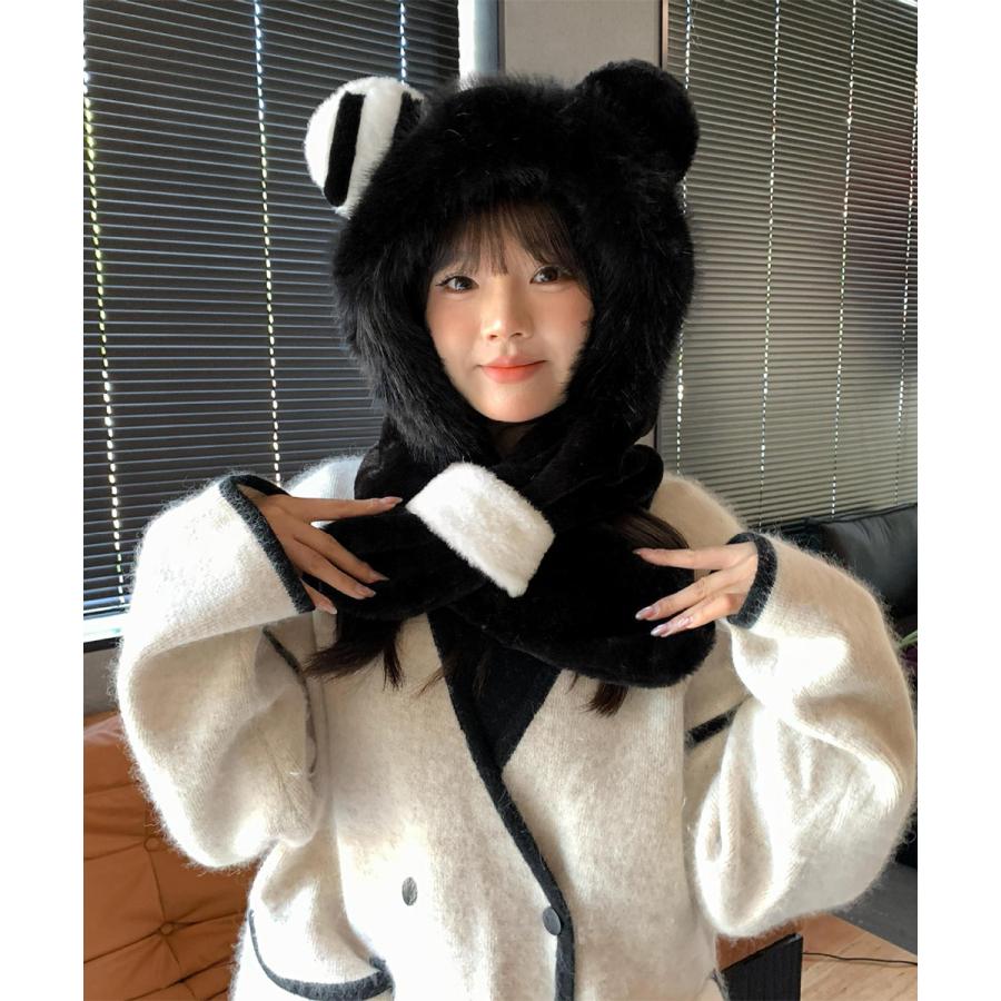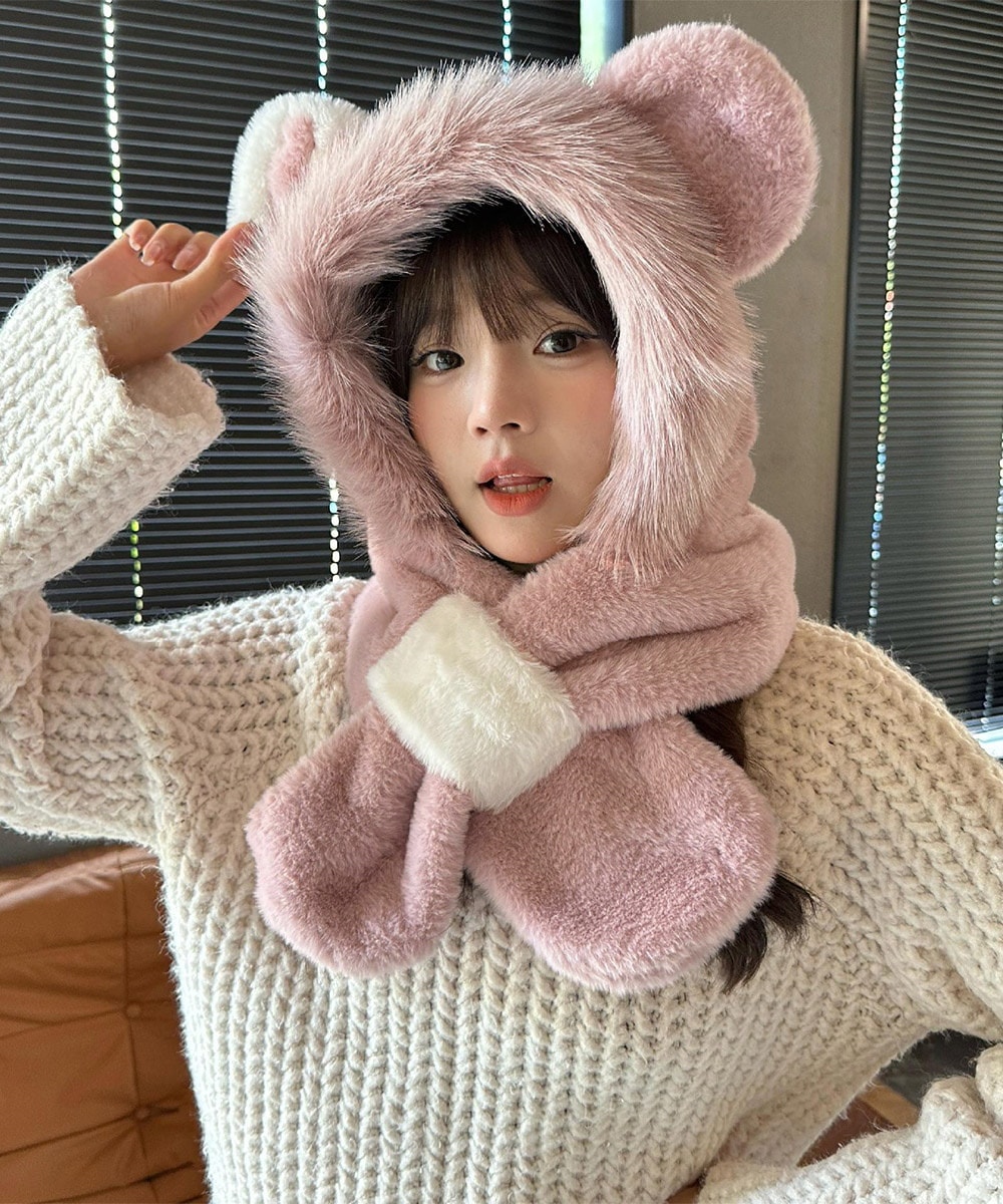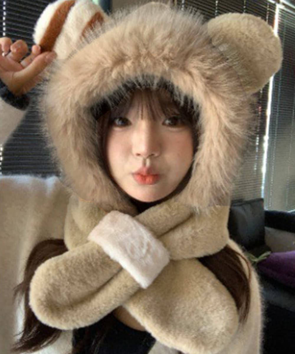 人气 新作 くまみみ帽子 マフラー付きファー帽子暖か スヌード