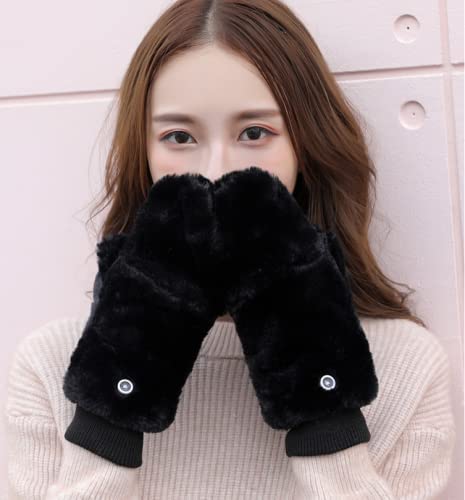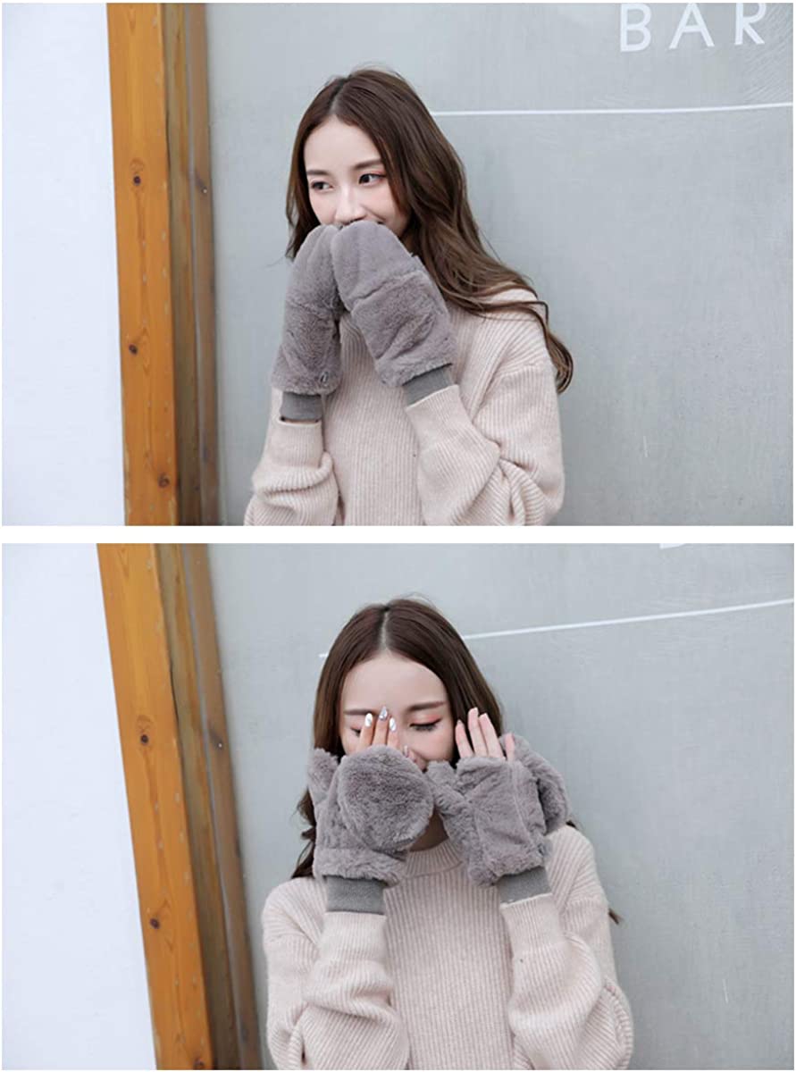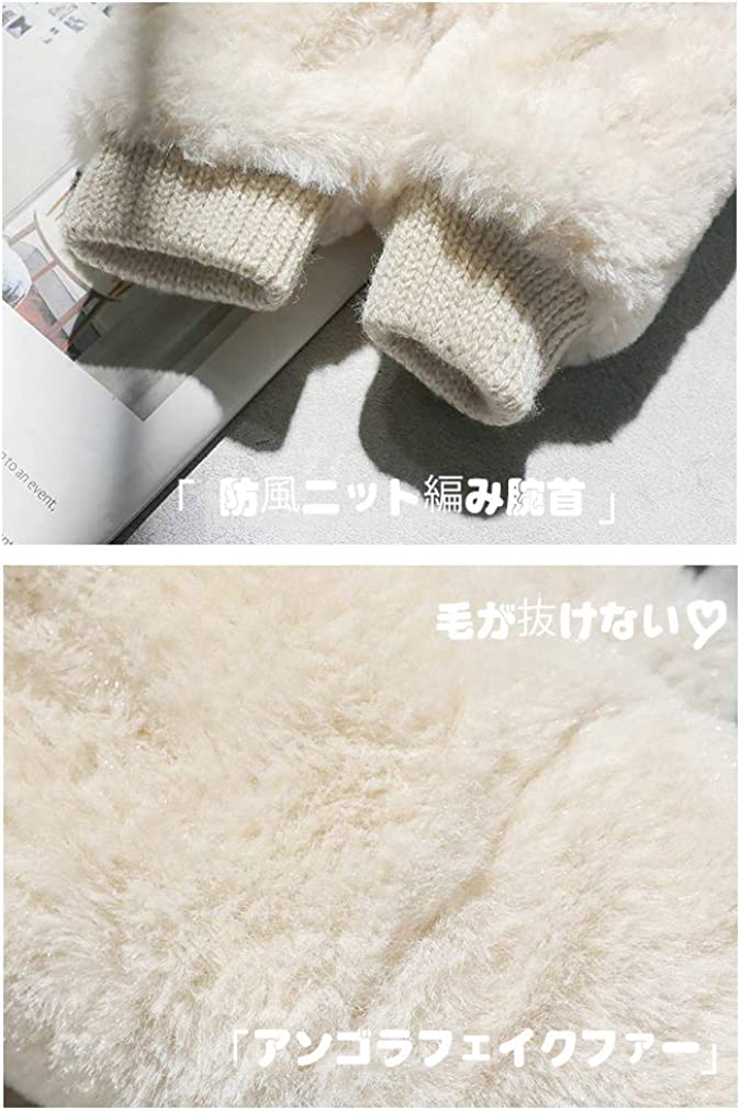 手袋 ミトン&指なし2way ー1010℃ 二重裏ボア あったか2 折りたたみフード手袋 防風ニット 紐付き 厚手グローブ エコ フェイクファー かわいいラビット 手袋レディース 4色